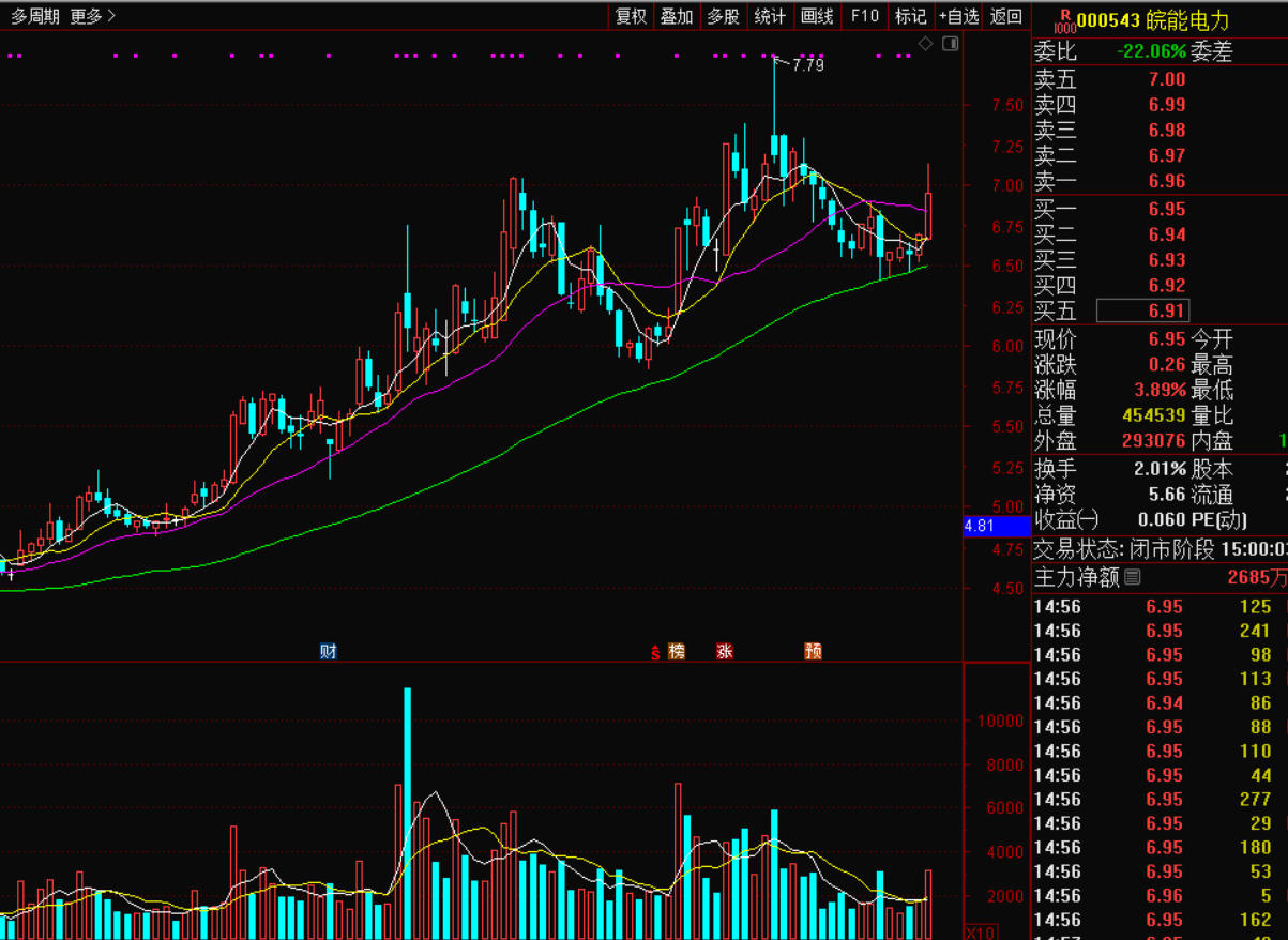 $皖能电力(SZ000543)$,老陈前期操作过的品种,当时高位出现过两次涨停,比较强势,后跟随板块和大盘回落,回踩到60日线止跌,盘了几天的小星,然后跟随电力板块反弹收中阳,老陈认为经过4天的小星止跌,这个底部是十分明确,昨天的中阳线是开启向上小段的标致,可能重点关注。