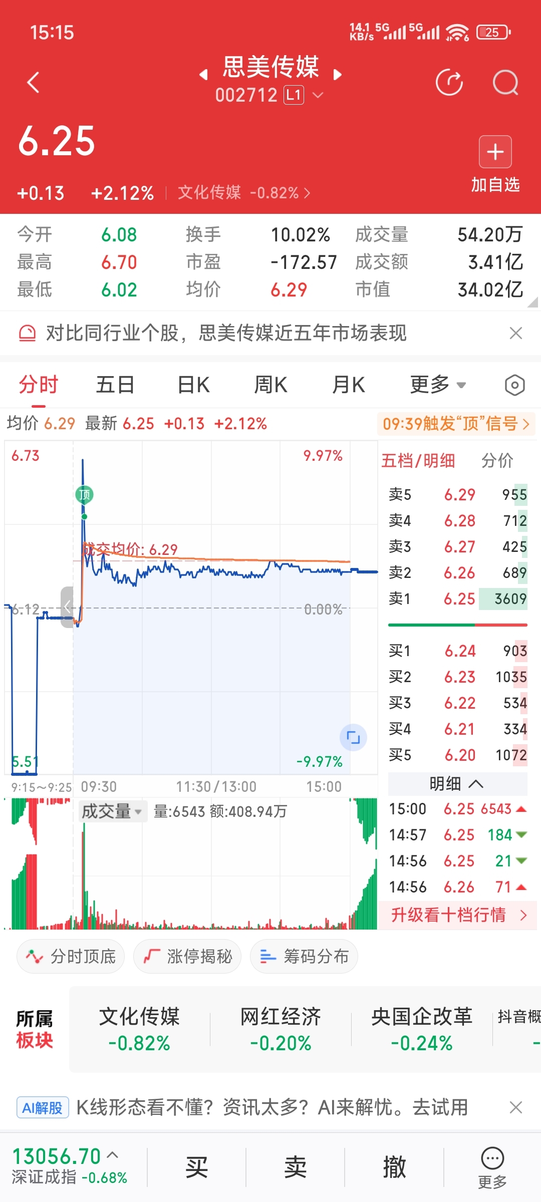 $思美传媒(SZ002712)$ 主力早上发的红包被谁抢到了?