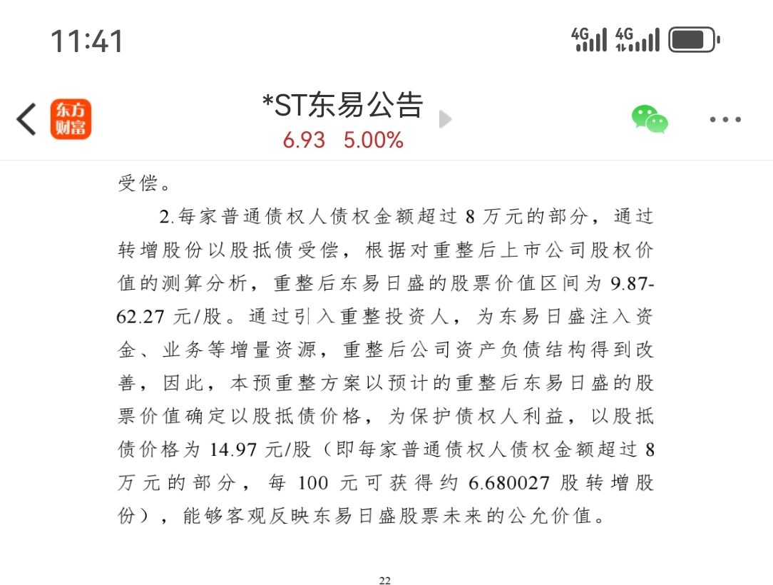 $*ST东易(SZ002713)$ 先涨到公司认可的最低价9.87,再到债权人的价格14.97
