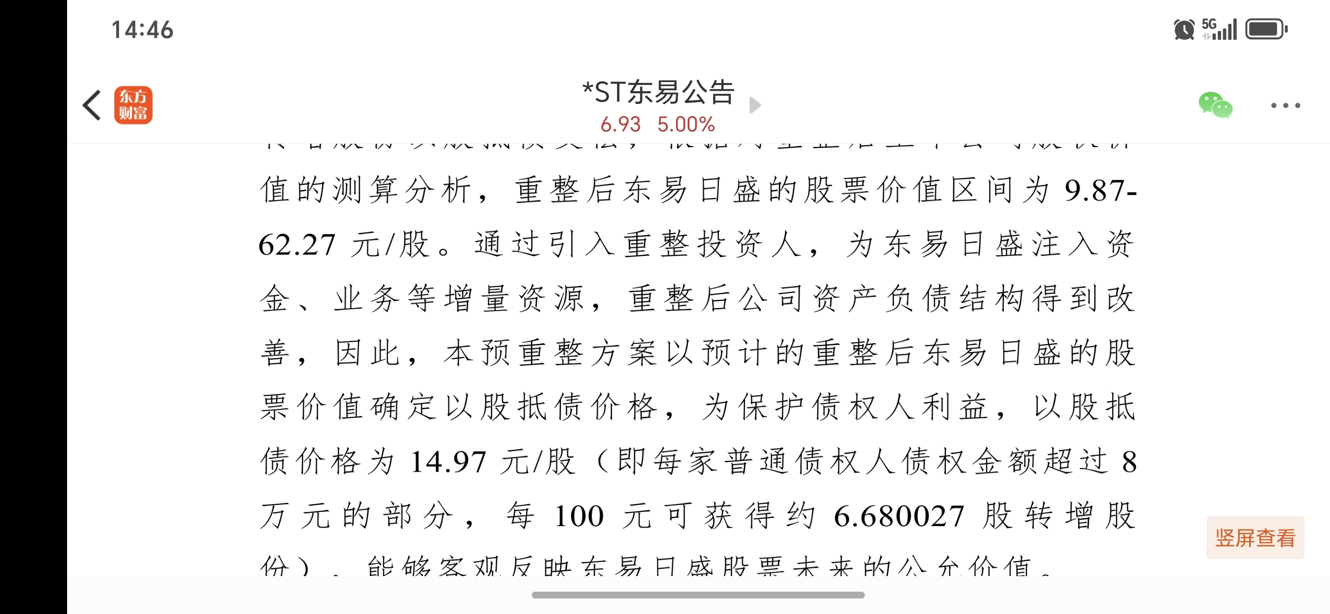 $*ST东易(SZ002713)$ 卖出的兄弟这么缺钱吗,别人成本是15块哦,公司对自己的估值是9.87到62块,公告能发出来,证—监会都认可的