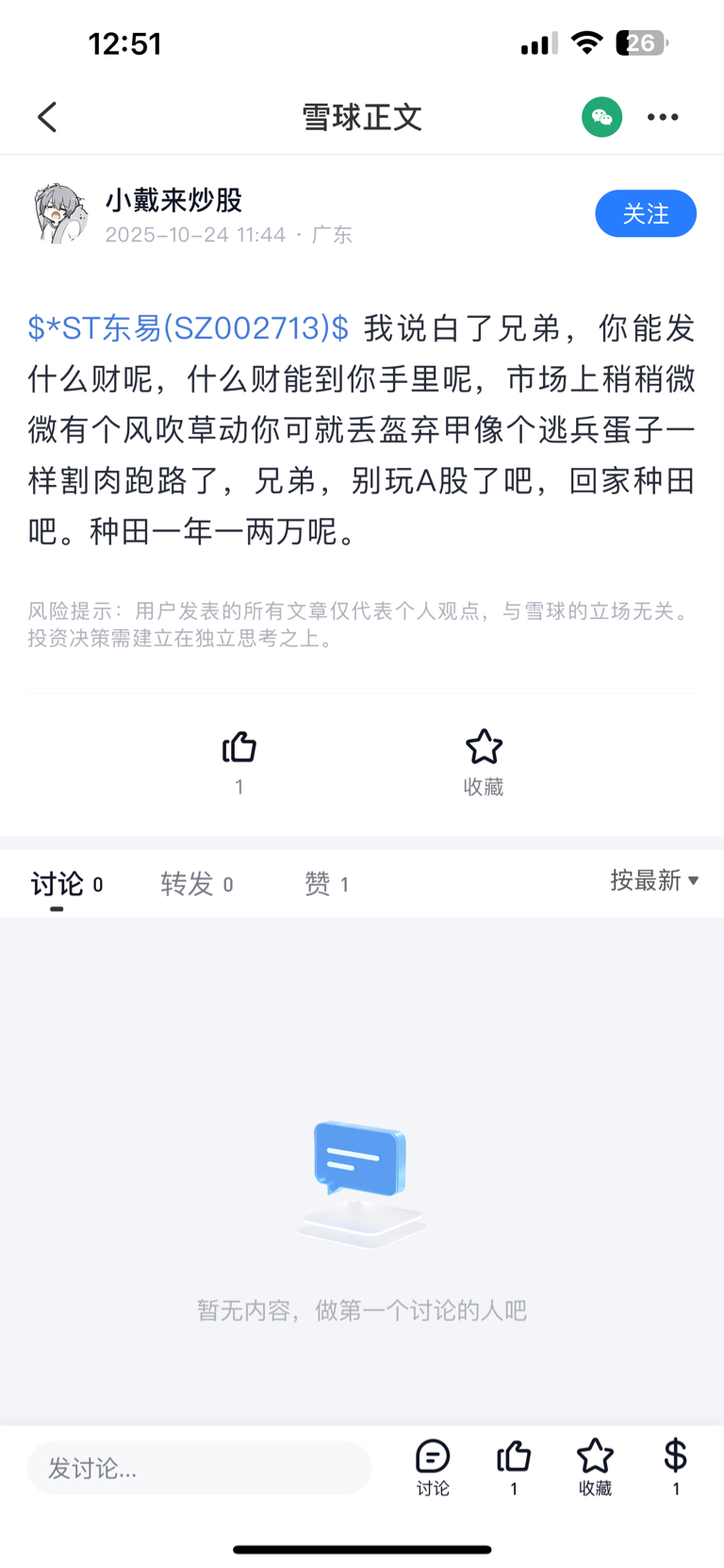 温馨提示: 1.根据《证券法》规定,禁止编造、传播虚假信息或者误导性信息,扰乱证券市场;2.用户在本社区发表的所有资料、言论等仅代表个人观点,与本网站立场无关,不对您构成任何投资建议。用户应基于自己的独立判断,自行决定证券投资并承担相应风险。《东方财富社区管理规定》