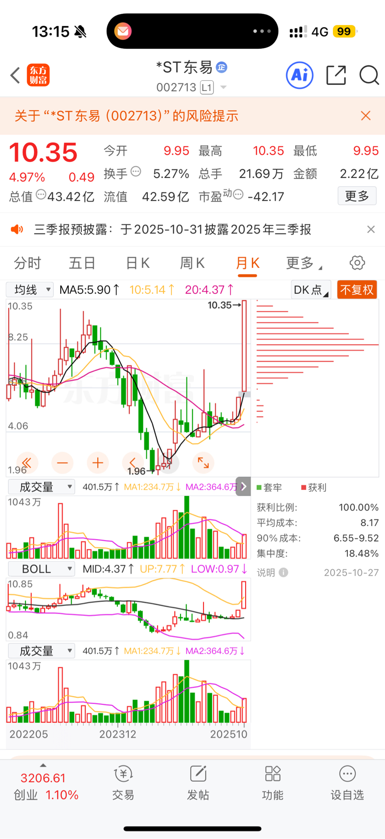$*ST东易(SZ002713)$ 能突破10.35这个平台,走出箱体就未来可期