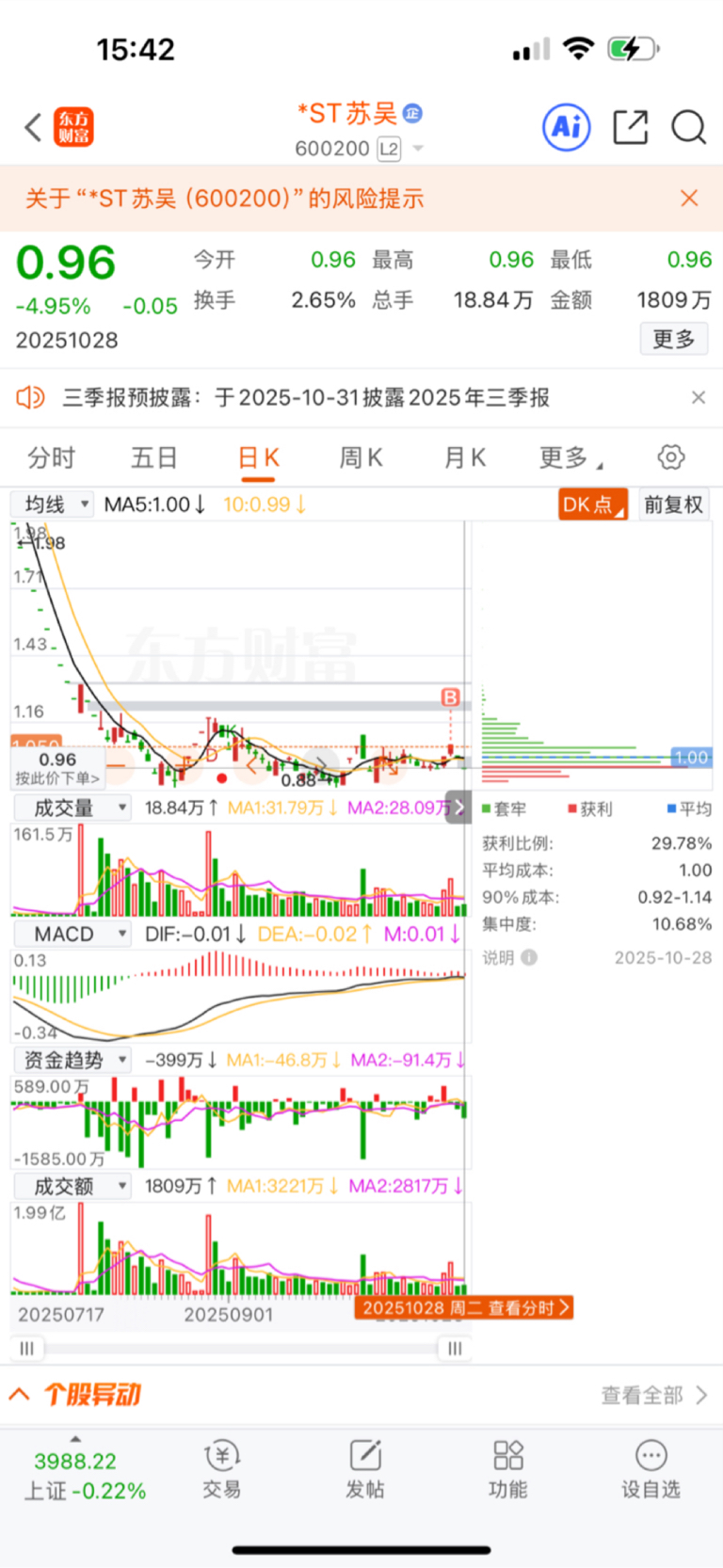 $*ST东易(SZ002713)$ 岭南没拿住。 工业富联 买完开涨。华通 苏吴 直接两个跌停板不知道什么时候出来。看东易不错进去打板 库库补仓。吃了个天地。 哈哈哈 不想让我活了。