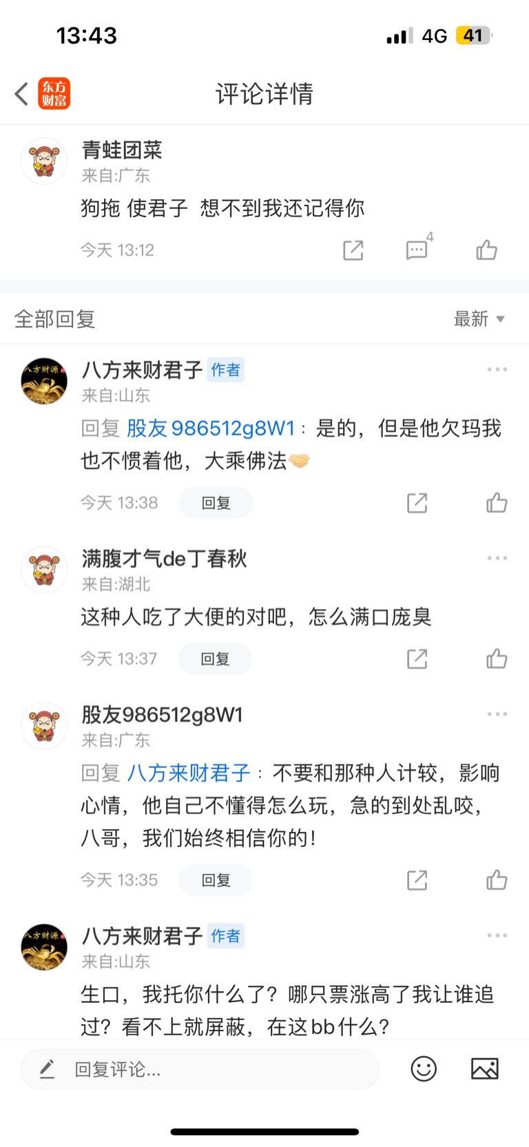 温馨提示: 1.根据《证券法》规定,禁止编造、传播虚假信息或者误导性信息,扰乱证券市场;2.用户在本社区发表的所有资料、言论等仅代表个人观点,与本网站立场无关,不对您构成任何投资建议。用户应基于自己的独立判断,自行决定证券投资并承担相应风险。《东方财富社区管理规定》