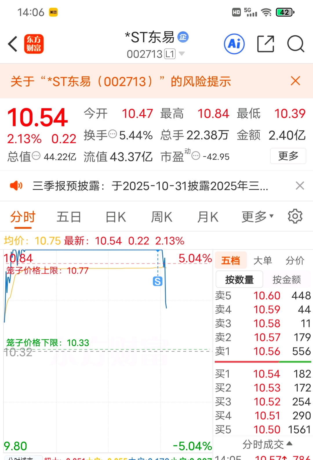 $*ST东易(SZ002713)$ 不会是哥砸的吧