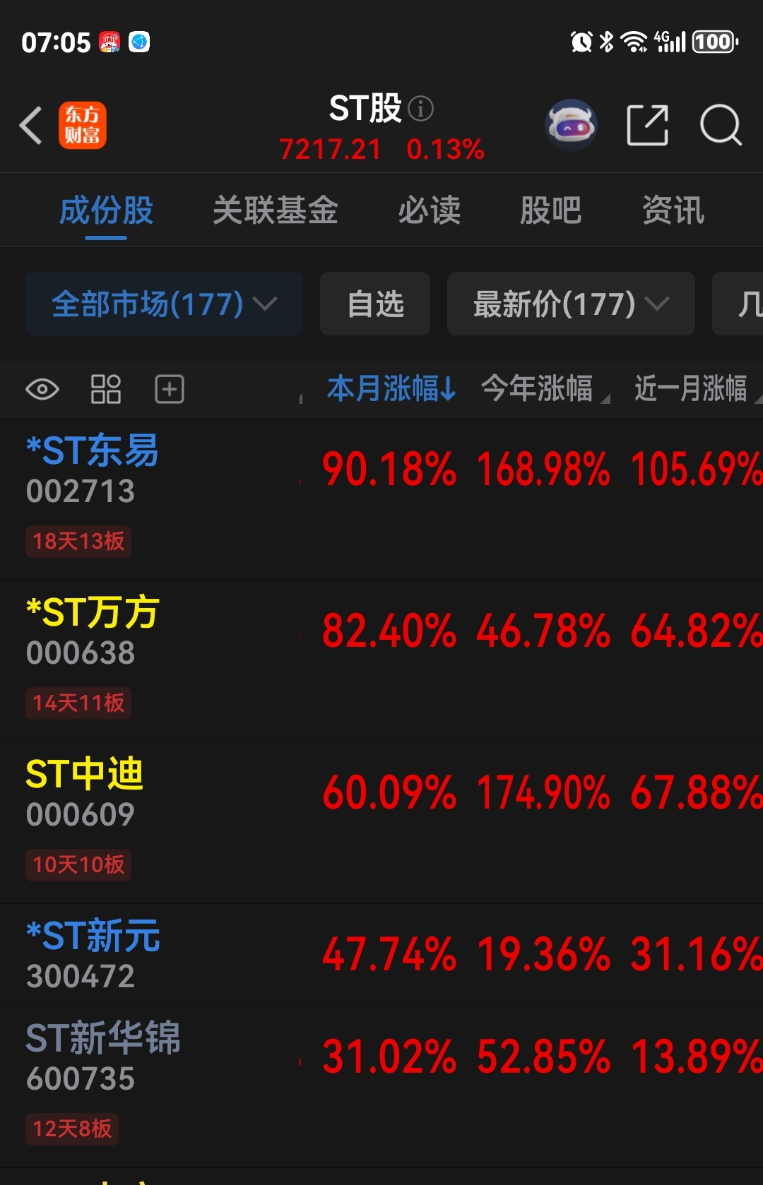 十月最后一天,加油!本月ST涨幅第一非你莫属。