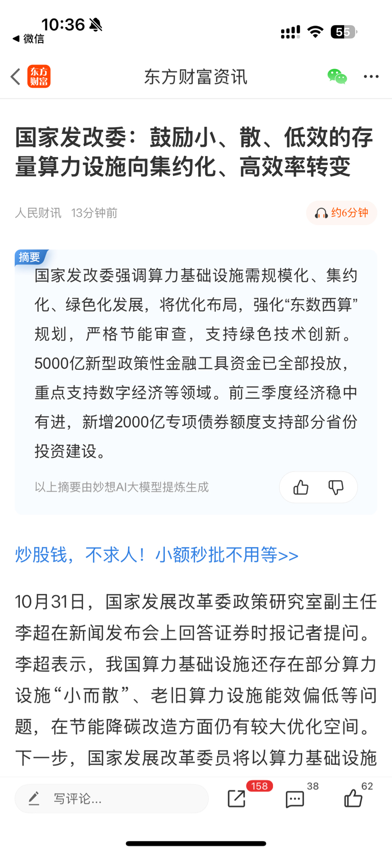 “东数西算”推动算力设施向西部绿电富集区集群布局,新建大型和超大型算力设施优先布局在全国一体化算力网国家枢纽算力设施集群!这不就是说的东易·和林格尔智算中心吗!算力产业集群!东易这完全是政策东风上的“猪”,大肉!$*ST东易(SZ002713)$