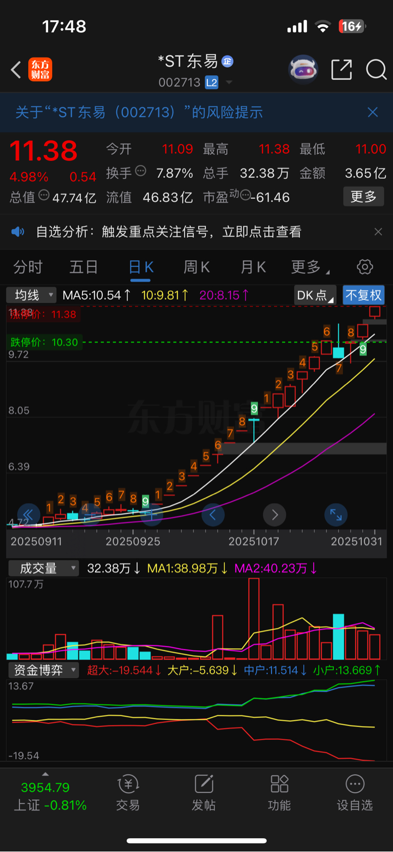 $*ST东易(SZ002713)$ 9转一道坎……底部第一轮小9转没关注你,现在望尘莫及啊