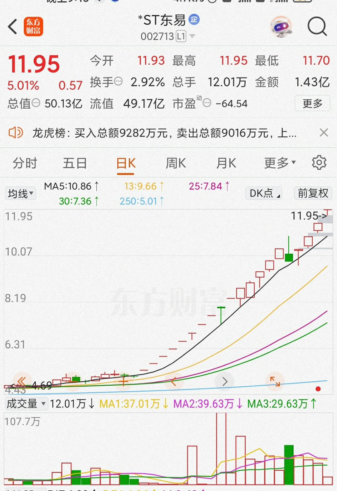 $*ST东易(SZ002713)$ 这成交量一天比一天少,已经没人卖了,几千万都封的死死的。这是准备顶到200%然后进小黑屋,再镀金嘛。已经隔夜顶一些,试试龙头,反正外面市场那么差,还不如呆在这里。