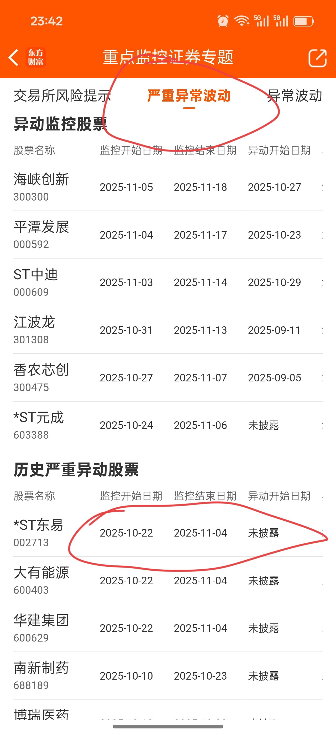 差点被上了小黑子的当,好在刚问了我的好大哥才搞清楚一个是严重异动,一个只是风险提