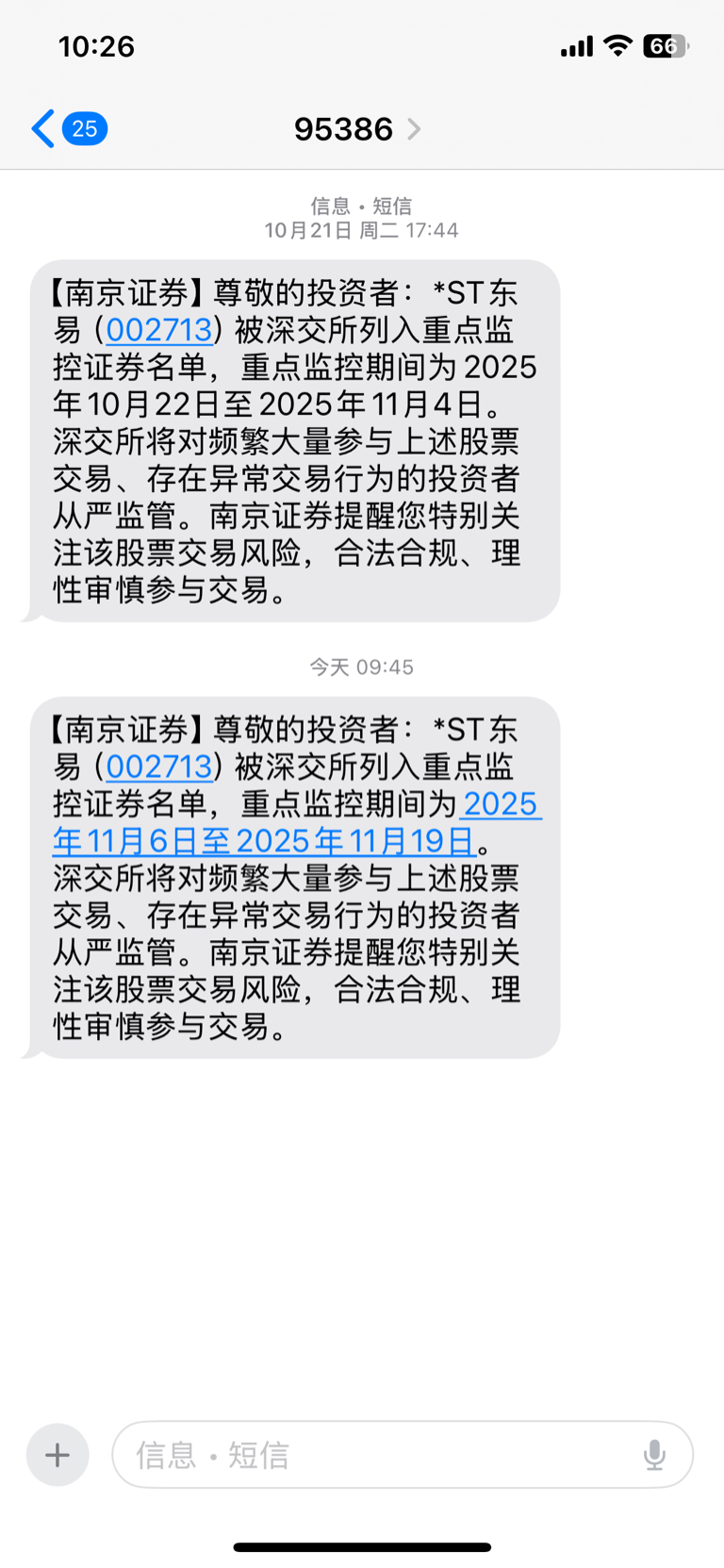 $*ST东易(SZ002713)$ 一早又收到重点监控提醒了。
