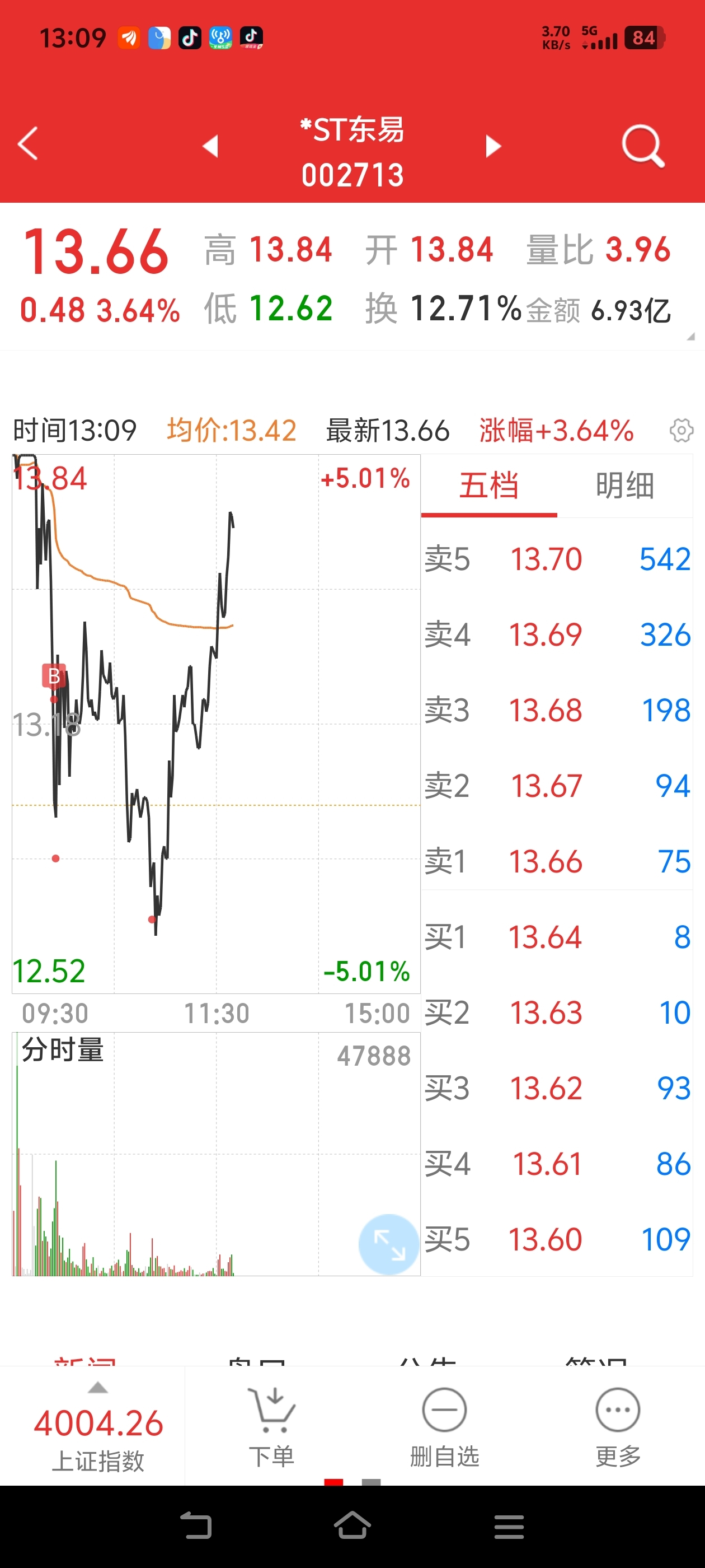 $*ST东易(SZ002713)$ 还是得搞龙头,可惜买少了
