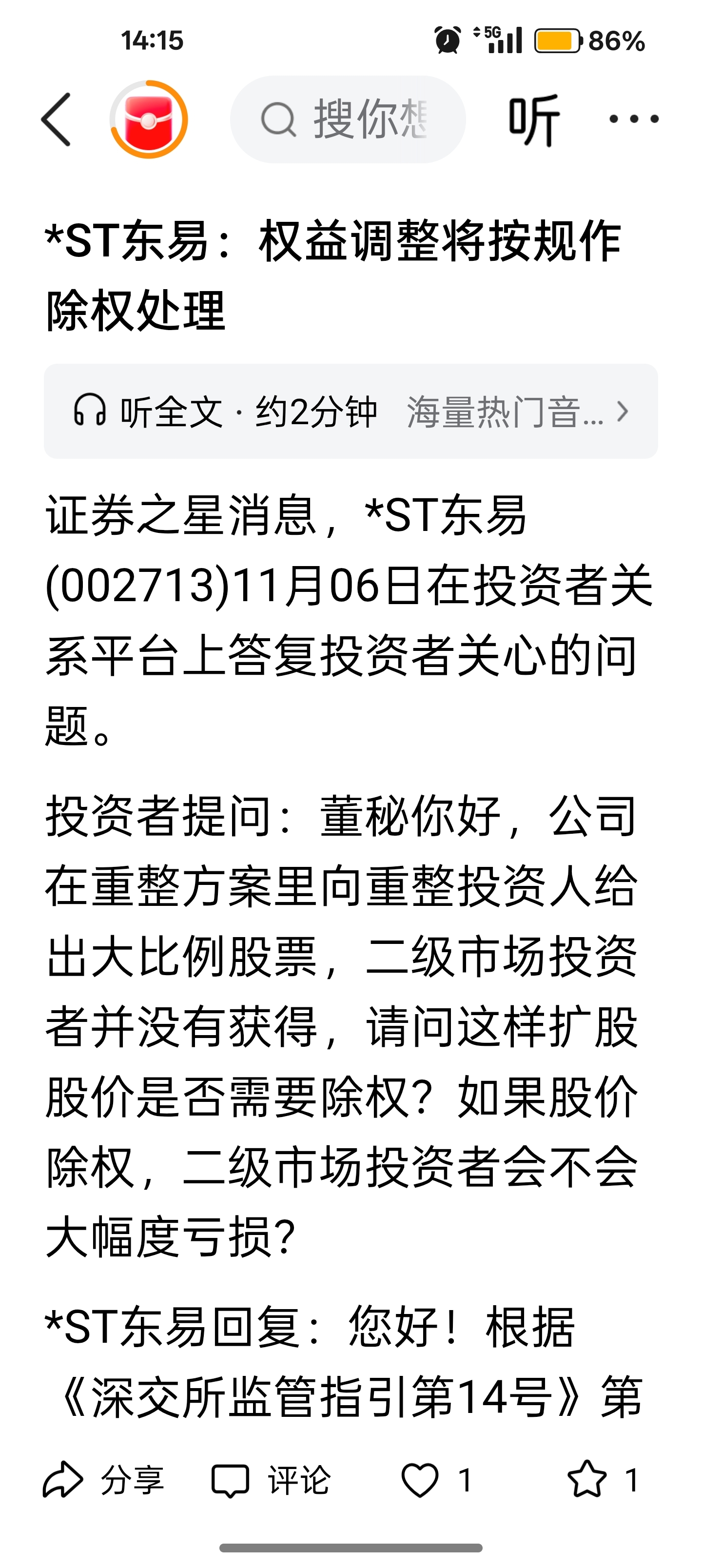 $*ST东易(SZ002713)$ 给你们来个大除权