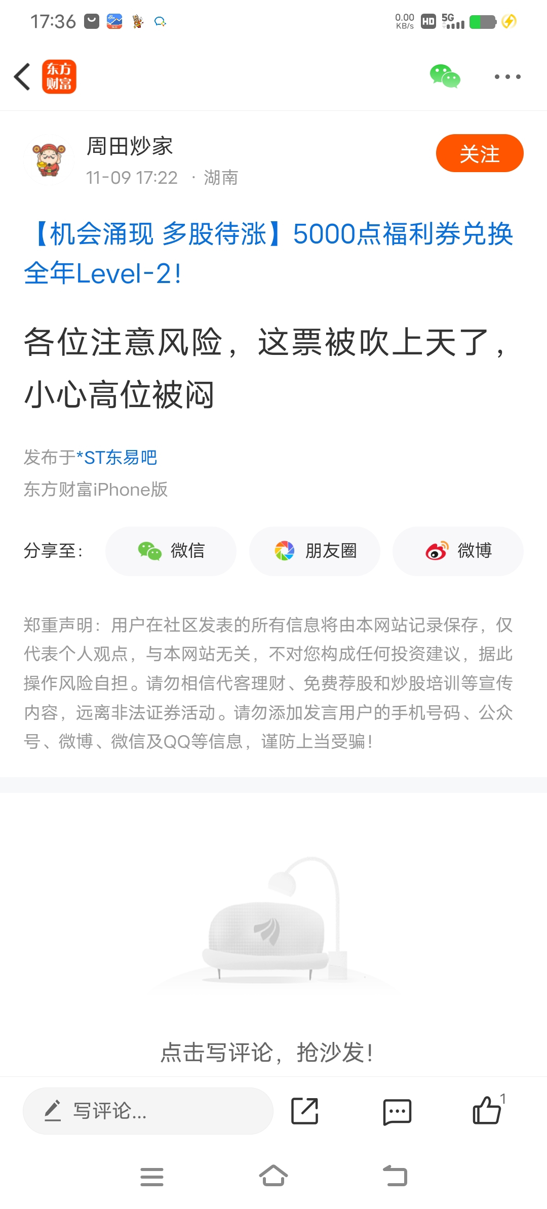 温馨提示: 1.根据《证券法》规定,禁止编造、传播虚假信息或者误导性信息,扰乱证券市场;2.用户在本社区发表的所有资料、言论等仅代表个人观点,与本网站立场无关,不对您构成任何投资建议。用户应基于自己的独立判断,自行决定证券投资并承担相应风险。《东方财富社区管理规定》