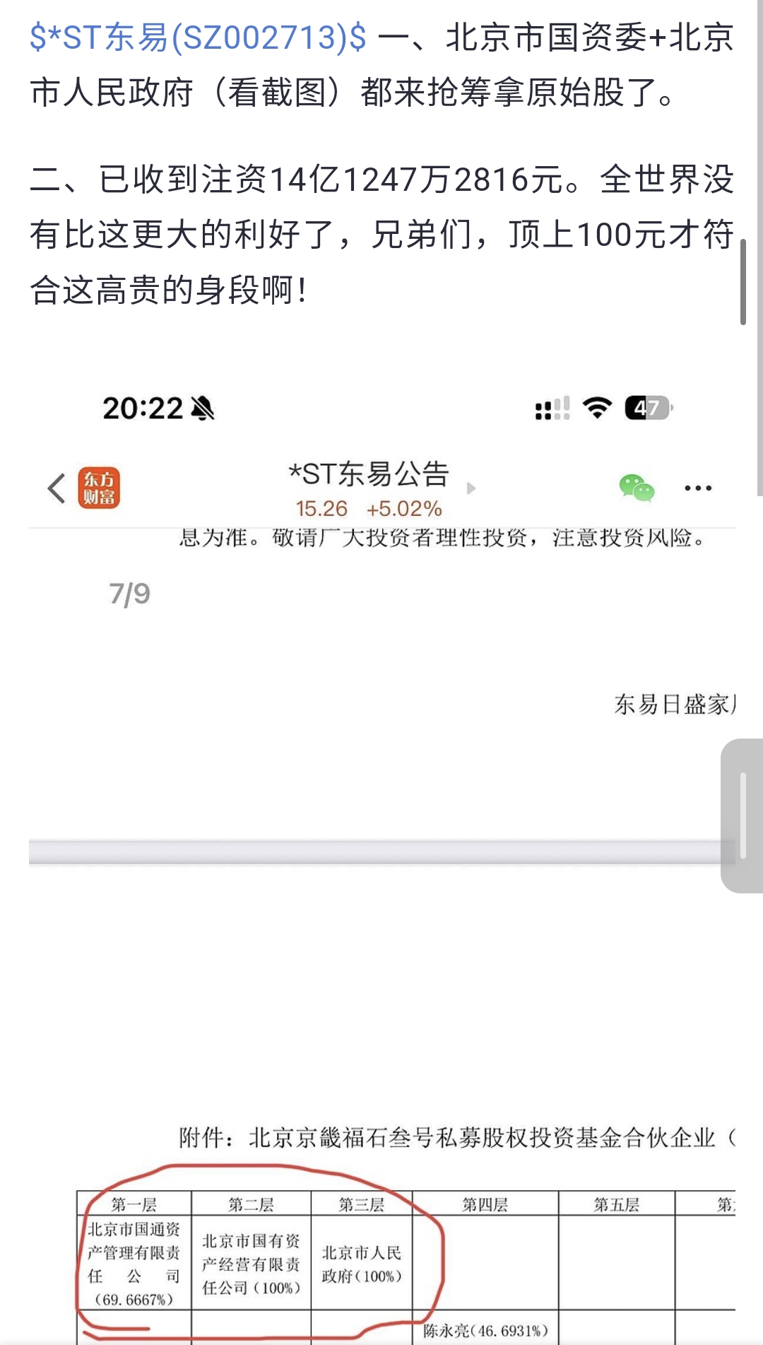 $*ST东易(SZ002713)$ 14亿到账,大佬们 国资委 北京政府 财政部 抢着买! 支持重整优质资产