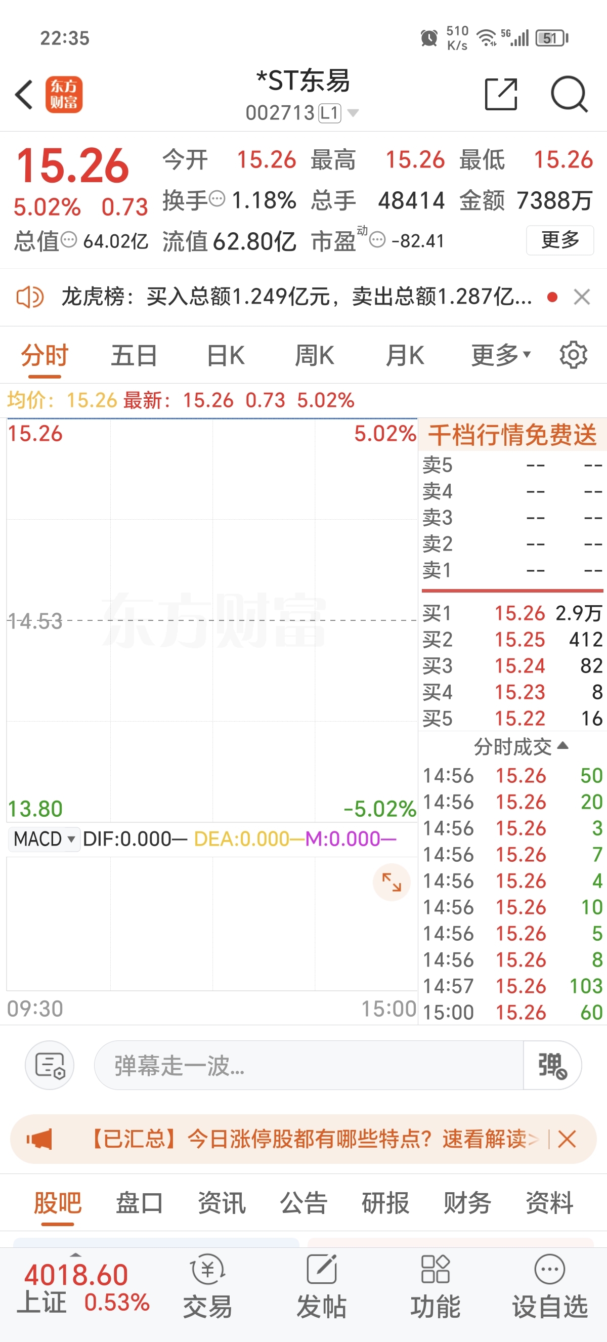 $*ST东易(SZ002713)$ #收盘点评# #复盘记录# 明天会有多少资金顶板?