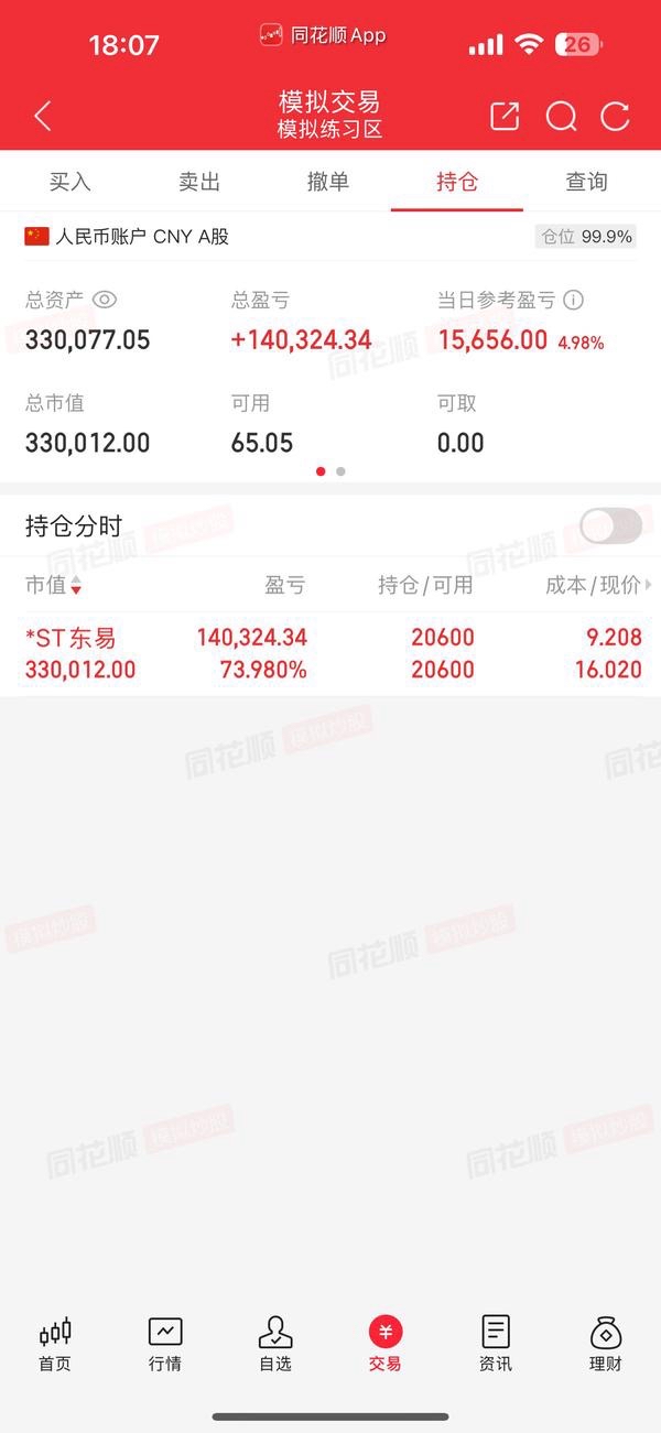 $*ST东易(SZ002713)$ 买是买了,模拟盘的仓位,大腿拍断