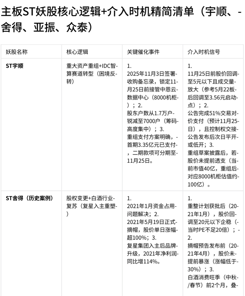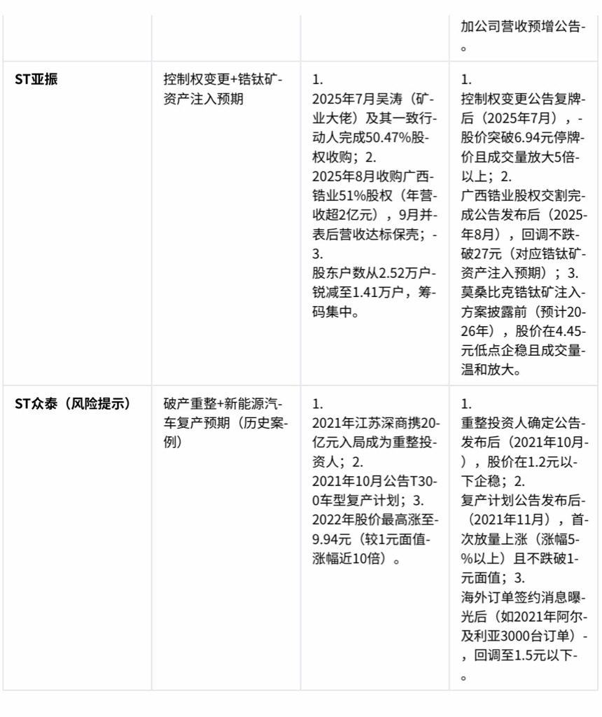 8.相较于主板题材轮动快、逻辑碎片化的特点,主板ST板块的上涨逻辑更清晰、爆发力更强,赚钱效率堪称A股天花板。ST板块的核心玩法围绕“困境反转、并购重组,破产重整,股权变更,优质资产注入、摘帽摘星、错杀修复”六大主线展开,每一条逻辑都能催生出翻倍甚至十倍的牛股——这些逻辑无需复杂的行业分析,无需纠结于业绩增速,只需判断“风险是否可控、反转是否可期”,对于散户而言门槛更低、把握性更强。