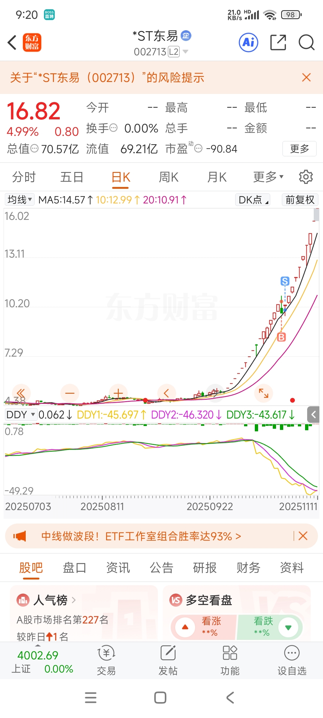 $*ST东易(SZ002713)$ 卖了之后,到今天已经连涨10个板子了,难受