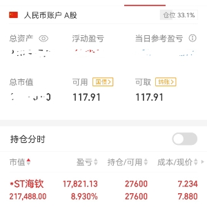 $ST新华锦(SH600735)$ $ST中迪(SZ000609)$ $*ST东易(SZ002713)$ 各位都在等我对吧!不好意思,让你久等了,很多人喜欢看我新华锦亏钱,不好意思,我还有25个点盈利,希望下午跌停继续买。