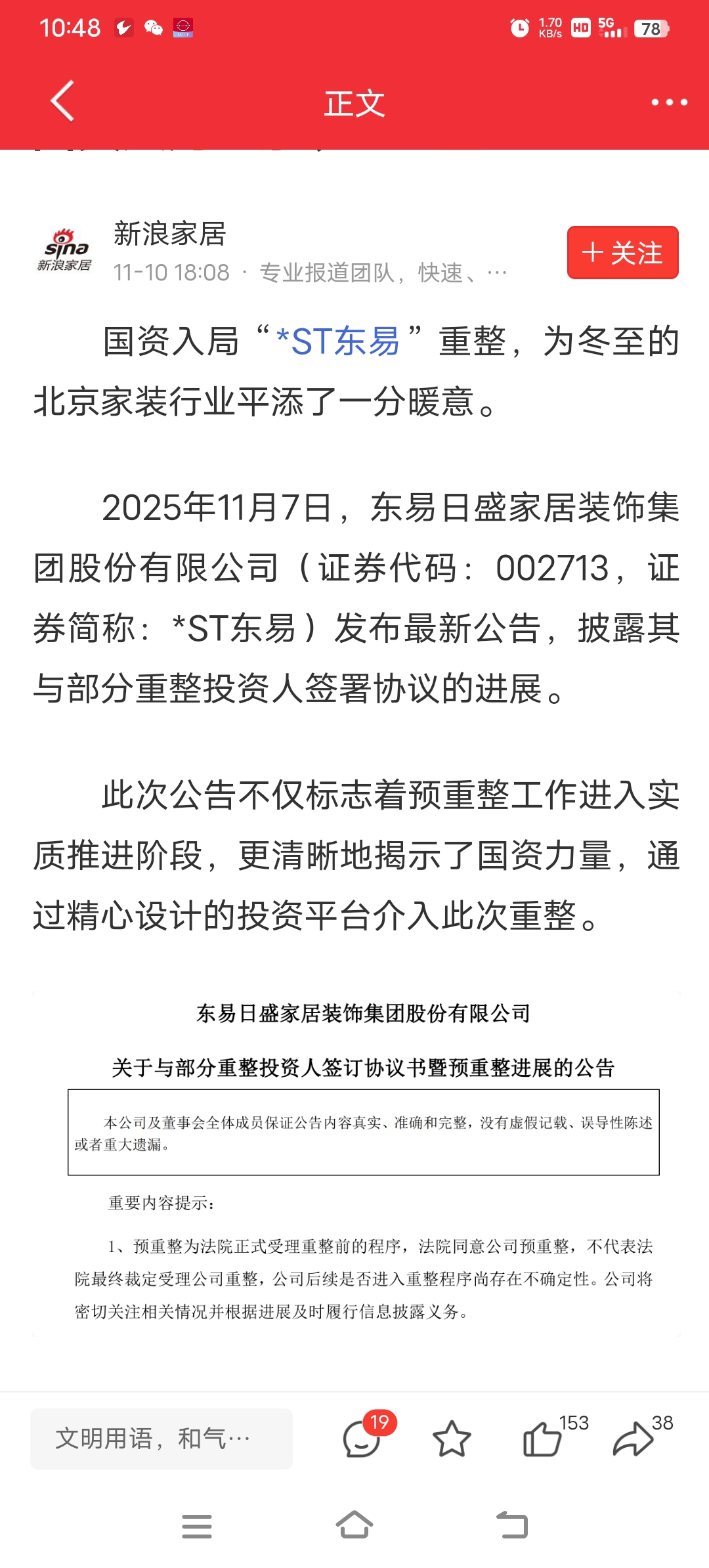 $*ST东易(SZ002713)$ 国资入局,不到50不走