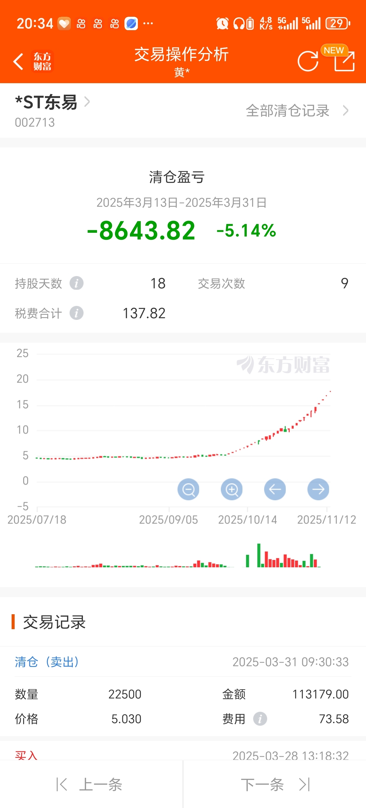 $*ST东易(SZ002713)$ 曾经三个涨停板还亏钱的票,现在都长这样子了