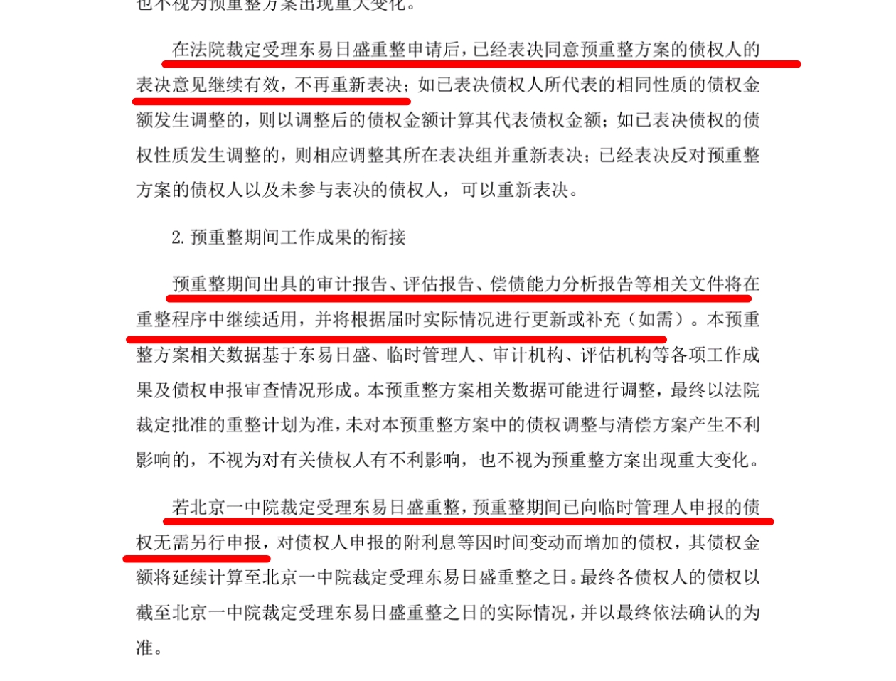 但*ST东易早就走完了这些耗时环节。10月9日就发布预重整方案,还完成了债权人表决,11月10日也收齐了14.13亿元投资款。拿到受理路条后,这份现成的预重整方案直接转成重整计划草案,不用重新制定和表决,相当于跳过了常规重整里最费时间的核心步骤,后续基本就是法院审核批准和落地执行,自然能实现近乎“一步到位”的高效推进。(详情交10月10日公告,下图)