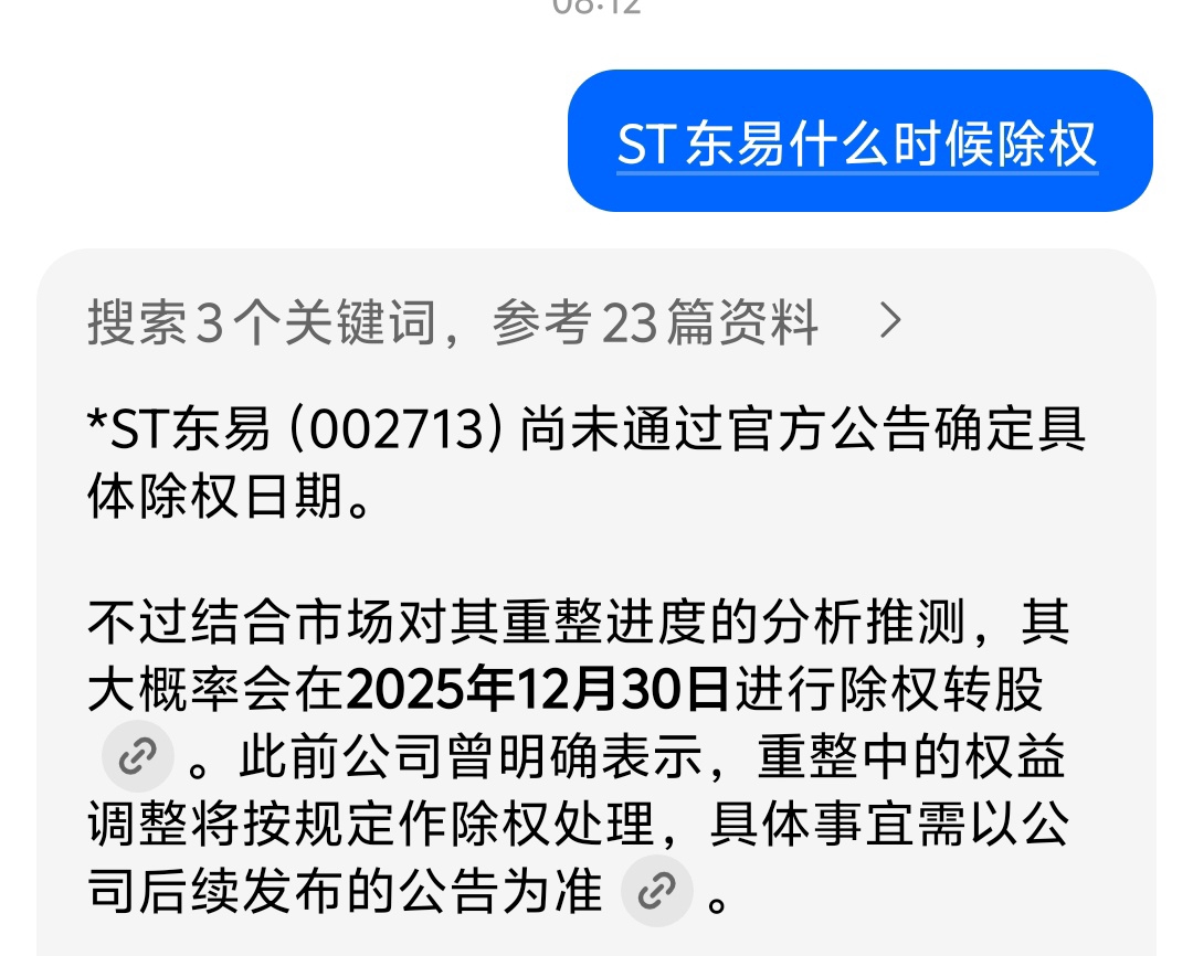 $*ST东易(SZ002713)$ 东易都还没到除权呢!别被这些影响了!拿着就好了