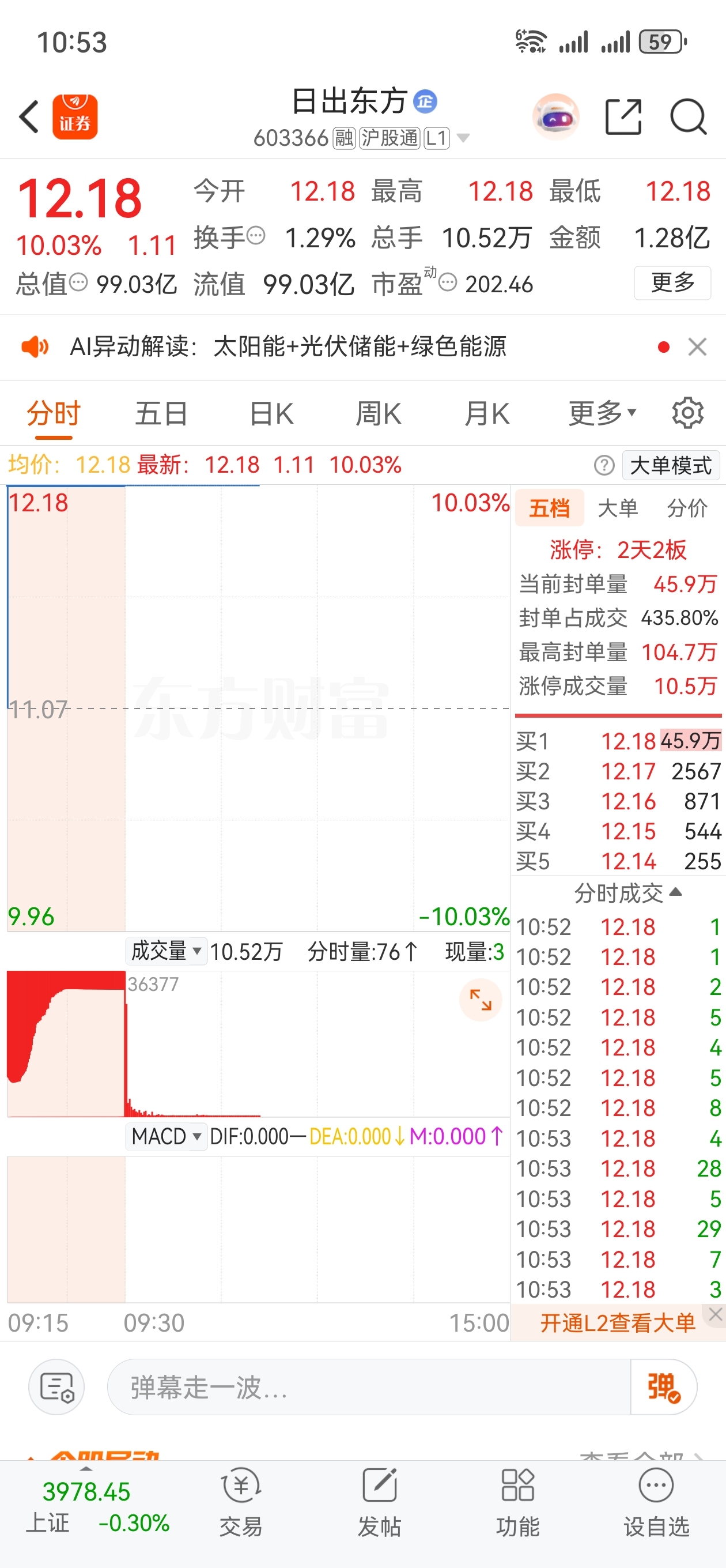 $*ST东易(SZ002713)$ $日出东方(SH603366)$ $大东方(SH600327)$ 东易复牌出来后还是一字板预期,东易日盛加油!玄学概念再次升级!三剑客会助威的!