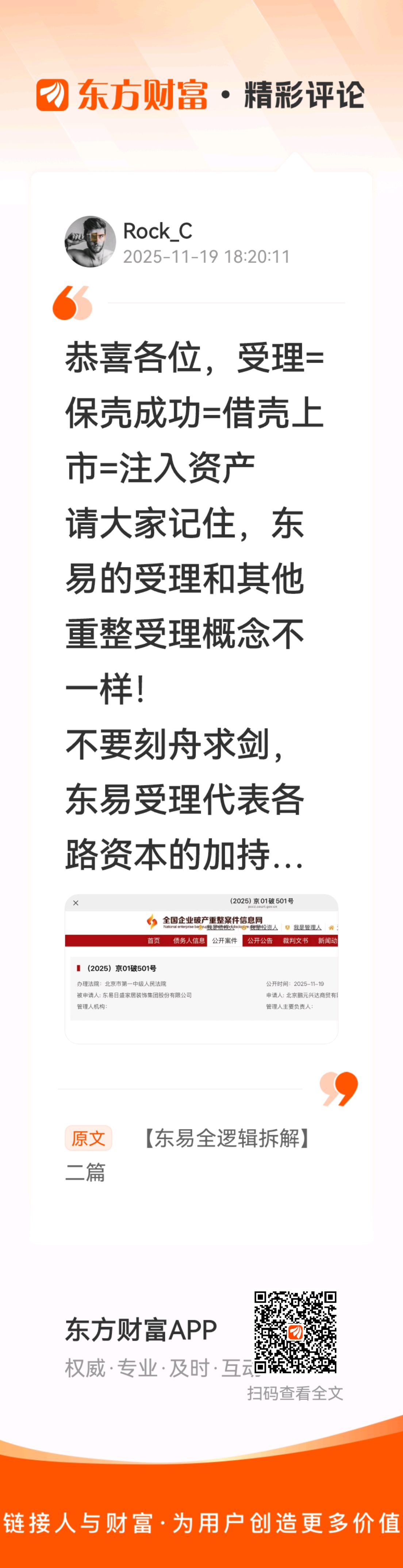 把所有脉络整理清楚以后,大家是不是豁然开朗!对东易未来发展有了坚定的信心!讲真,这么优秀的重整标的,很久都没遇到了,天天喊着困境反转、借壳上市、科技公司,这不全来了么!