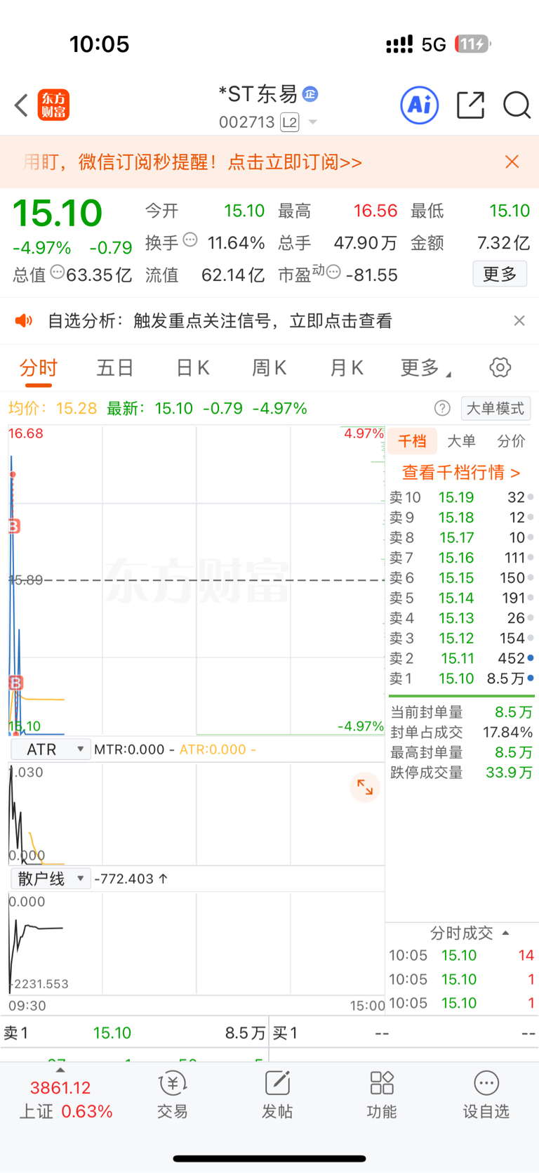 $*ST东易(SZ002713)$ 完了完了账户亏损1万多5 今天又上头冲动了。