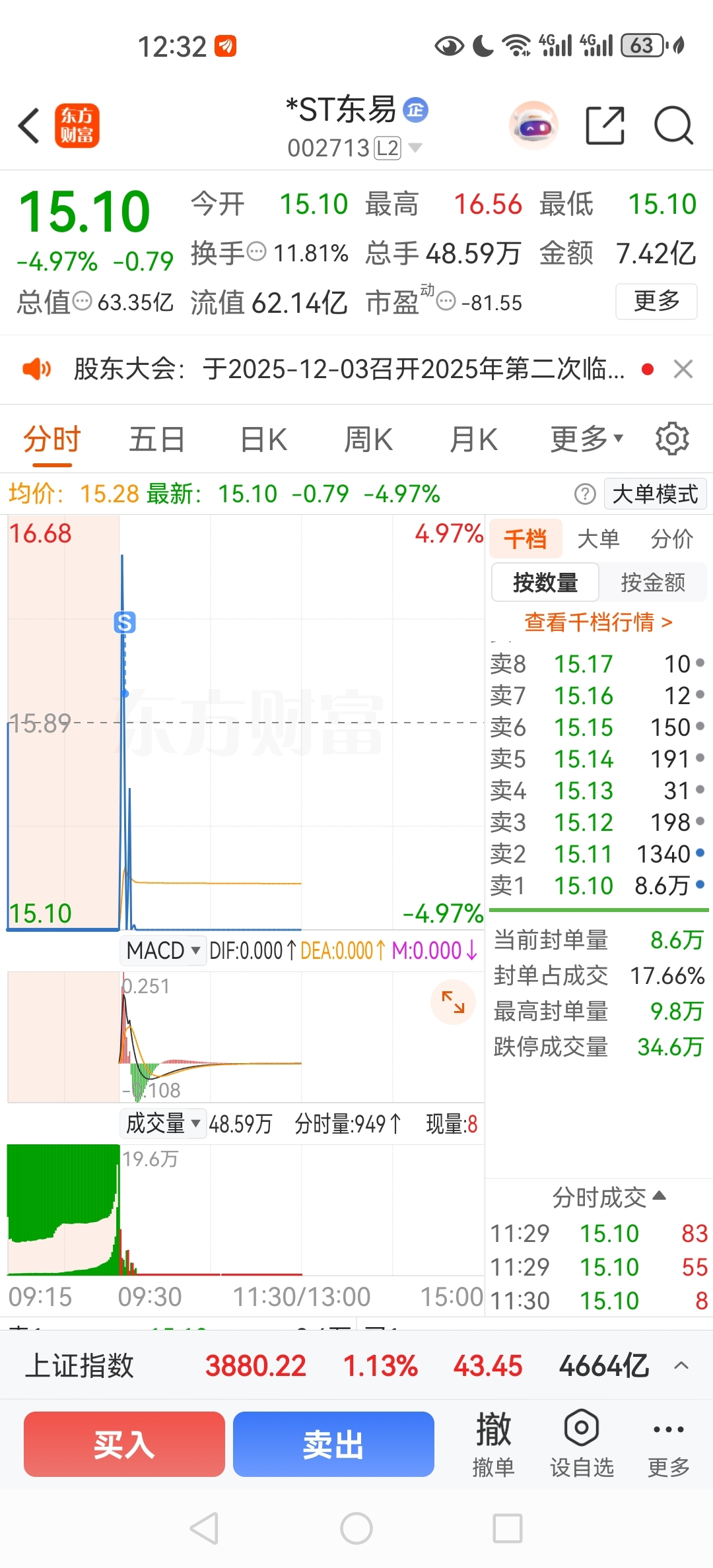 $*ST东易(SZ002713)$ 感谢大帝,功成身退,之前封跌停有人嘲讽我,我感觉闹麻了,收益还是到手,虽然没有翻倍。