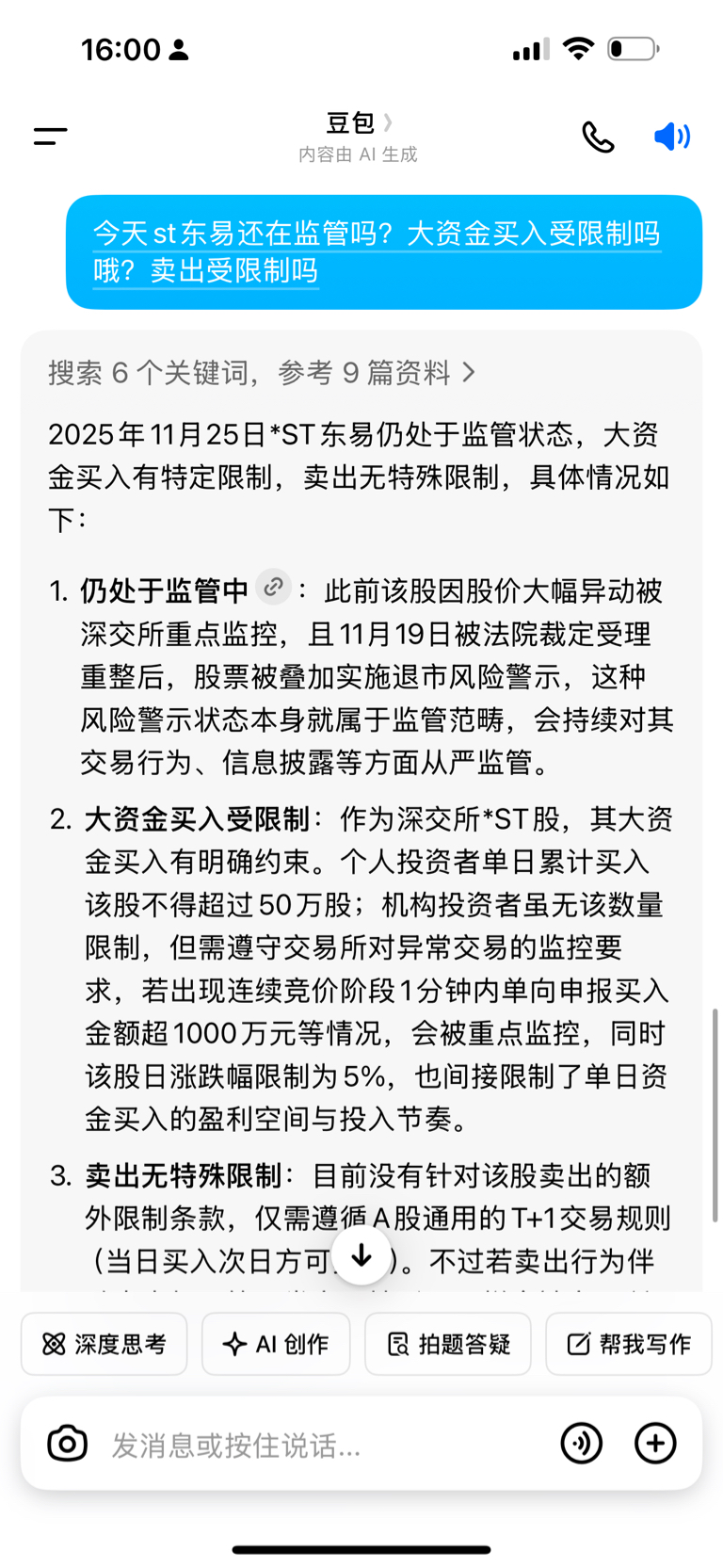 $*ST东易(SZ002713)$ 今天还在监管期间,主力资金没法大单买入。。也无法进行大规模加仓。而卖出不受限制。$ST中迪(SZ000609)$