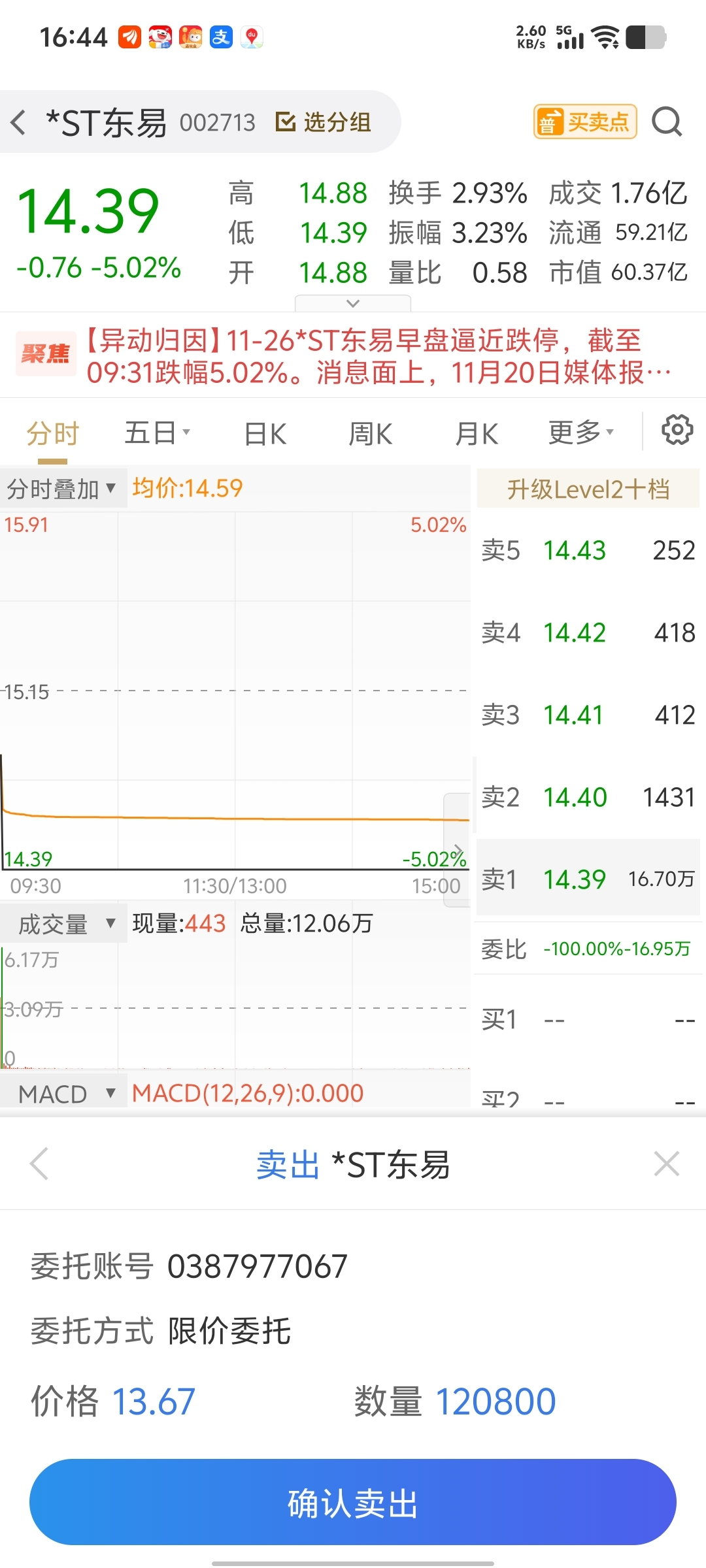 $*ST东易(SZ002713)$ 已经挂好了希望能出去