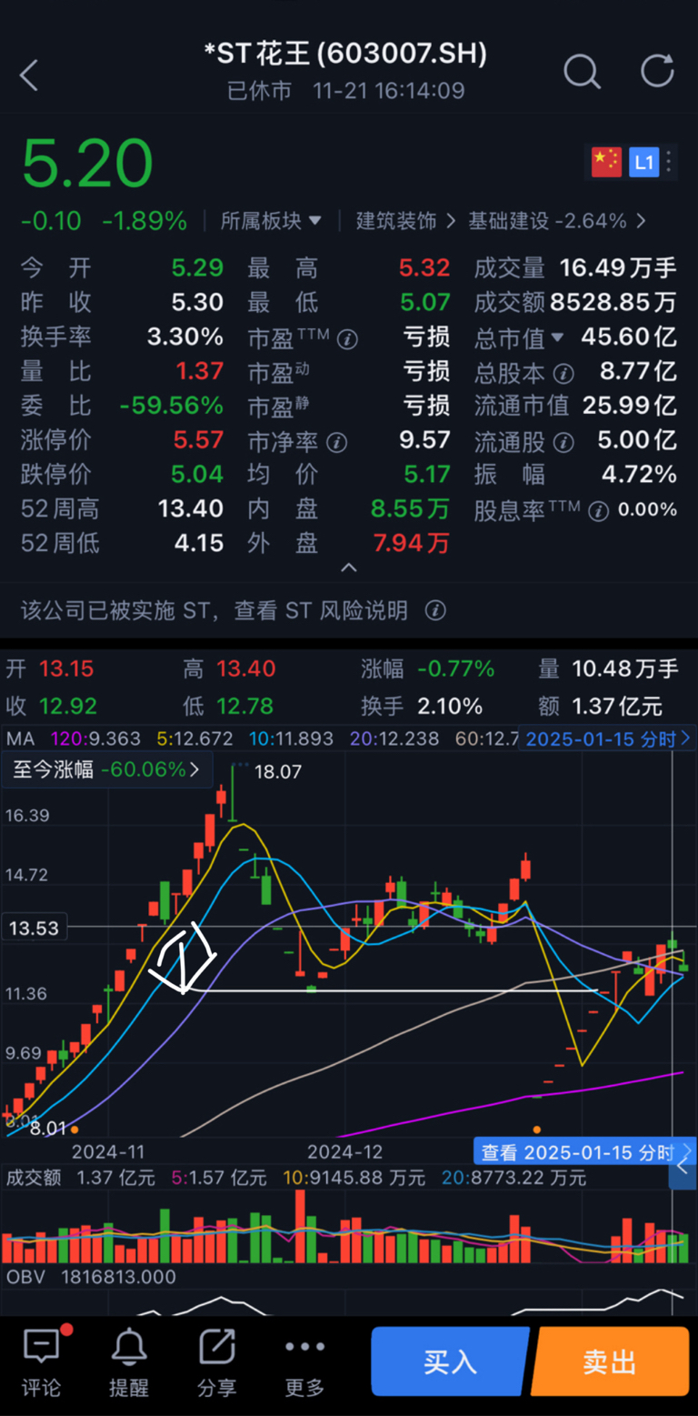 $*ST东易(SZ002713)$ $*ST花王(SH603007)$