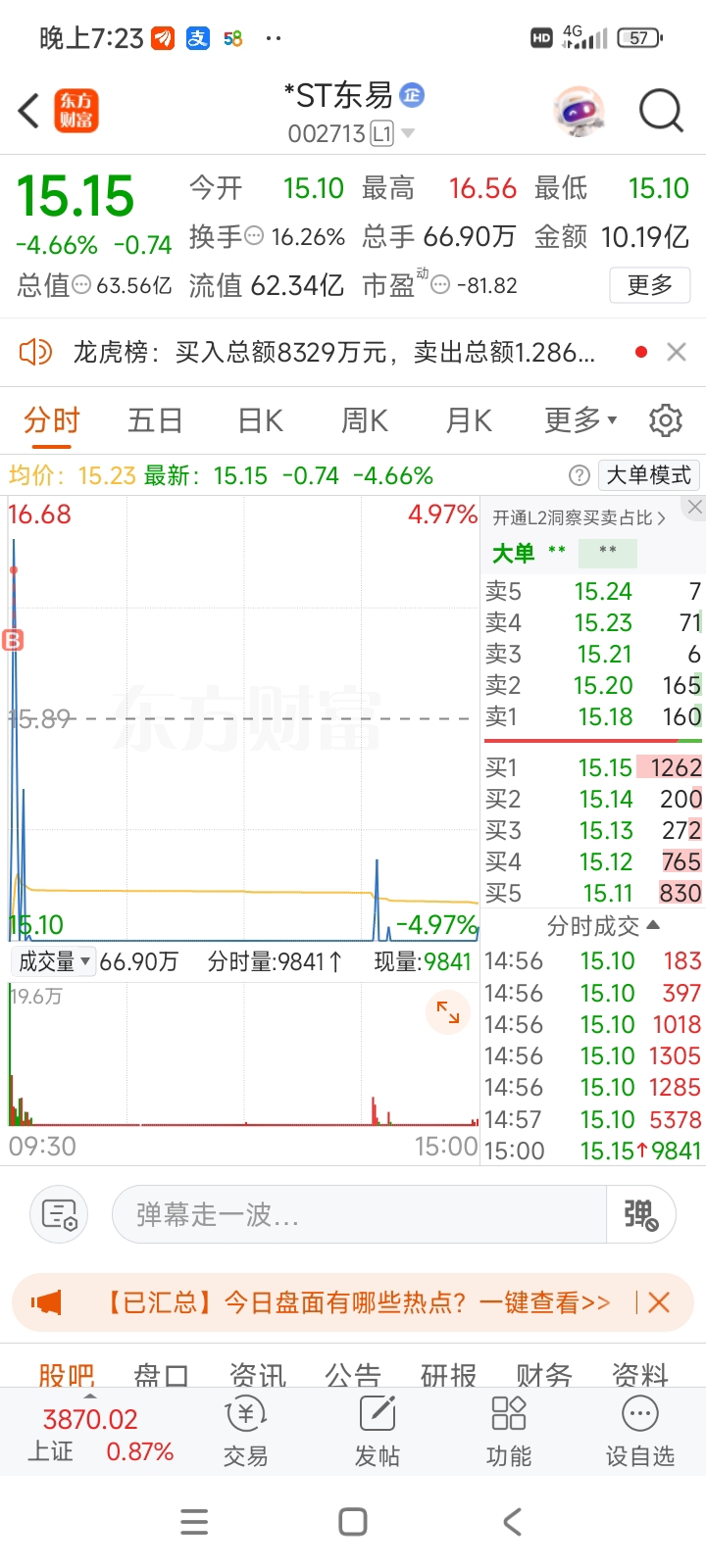 $*ST东易(SZ002713)$ 接着跌,主力说了算