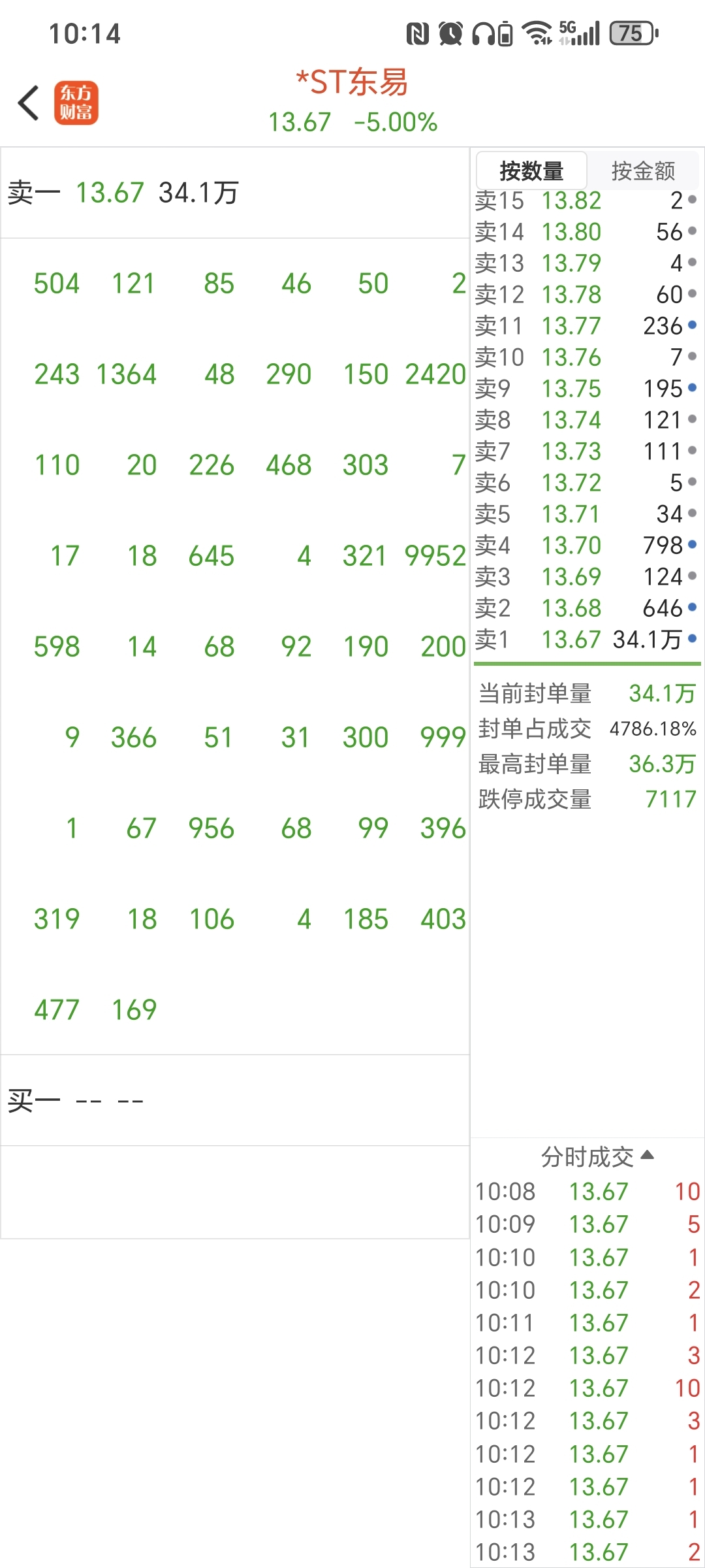 $*ST东易(SZ002713)$ 有个9000多手的9:15分挂上的,排在前面,都跑不掉,都何必呢,散户踩踏,都撤单,兴许还能打开