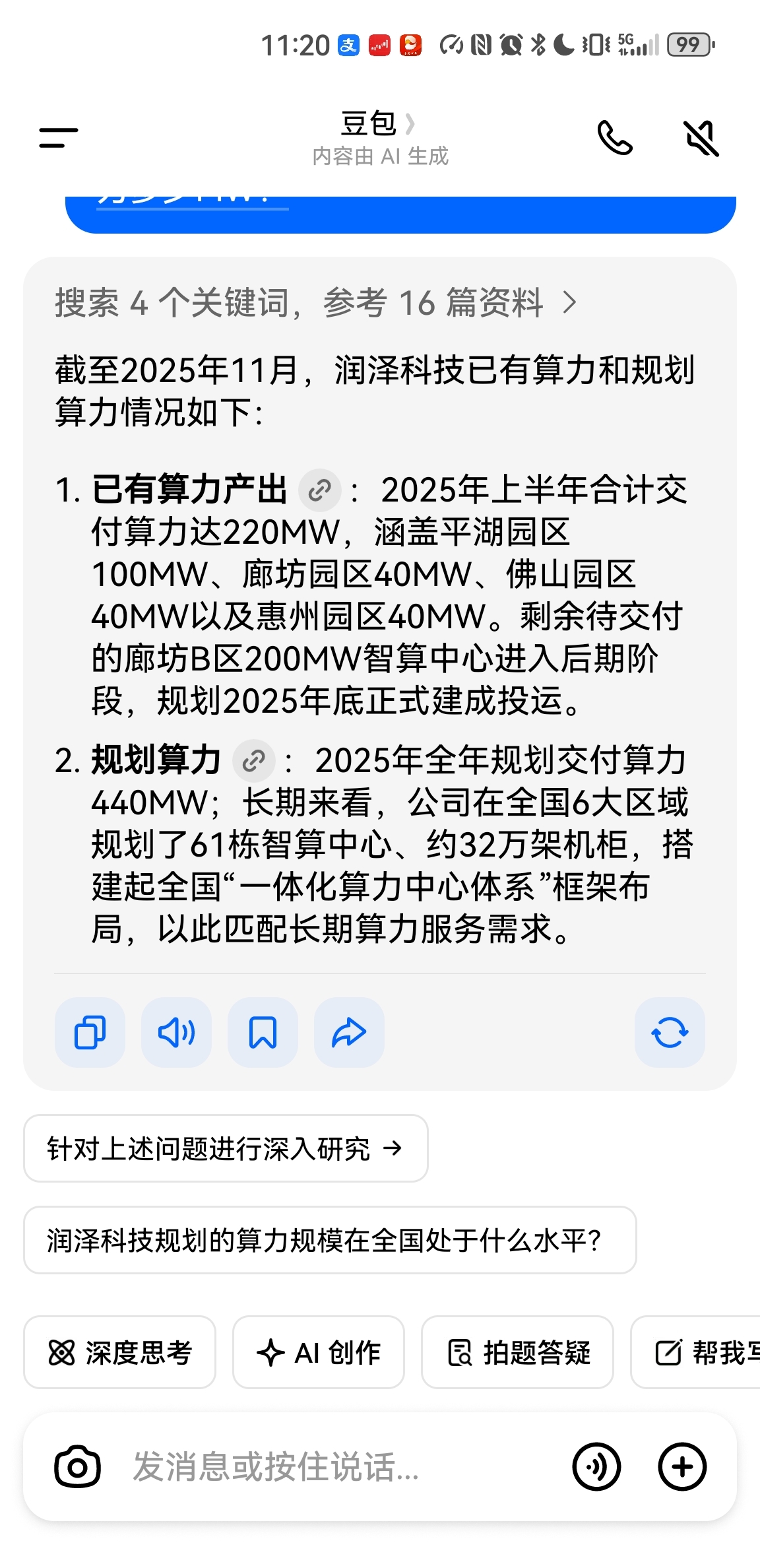 东易只是前面一口气涨太多了的良性回调,对比东易和润泽科技的算力规模,这俩是一个级别的,润泽是440MW,东易仅和林格尔就达到400MW,东易还有河北廊坊200MW的算力规划呢,还有长空建设的导入呢,单是长空建设就值100多亿!加上跟润泽同规模的算力规划,润泽科技最高1222亿市值,东易巨大规模的算力注入叠加牛市,拉到62元并不是天荒夜谈,而是完全可能。现在大跌时只要忍住不割肉,就一定亏不了,这话我说的!只需要耐心等候两个月去验证!