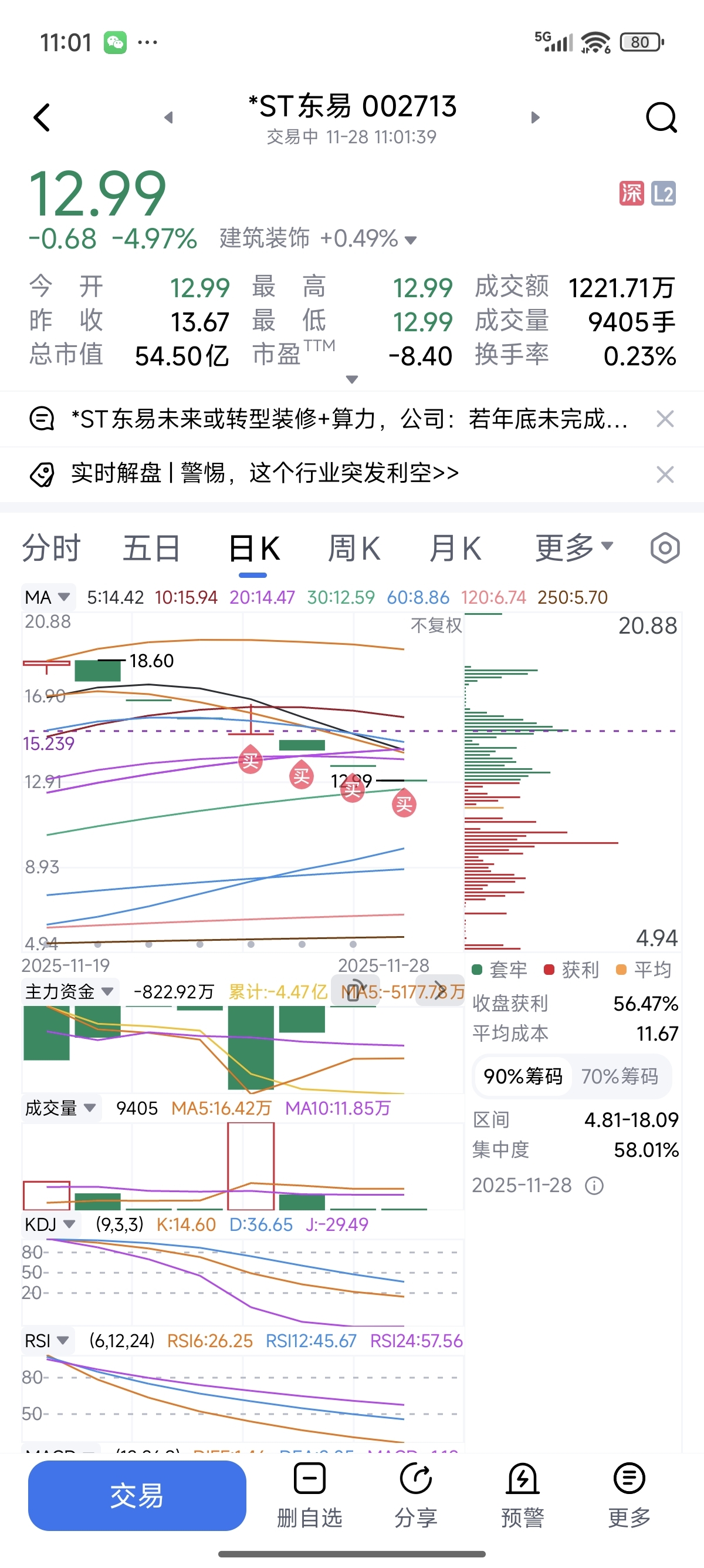 $*ST东易(SZ002713)$ 没什么好说的,看图,这个我拿到你退市