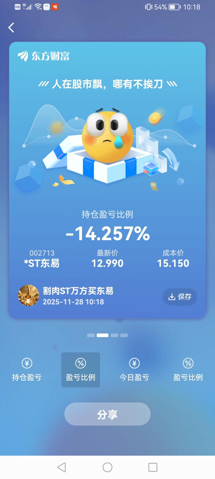 $*ST东易(SZ002713)$ $海欣食品(SZ002702)$ 海欣食品都地天板了,要不是被东易套住了我早上都去抄底海欣食品早都回本了,东易太坑了!还是正股地天板好玩!