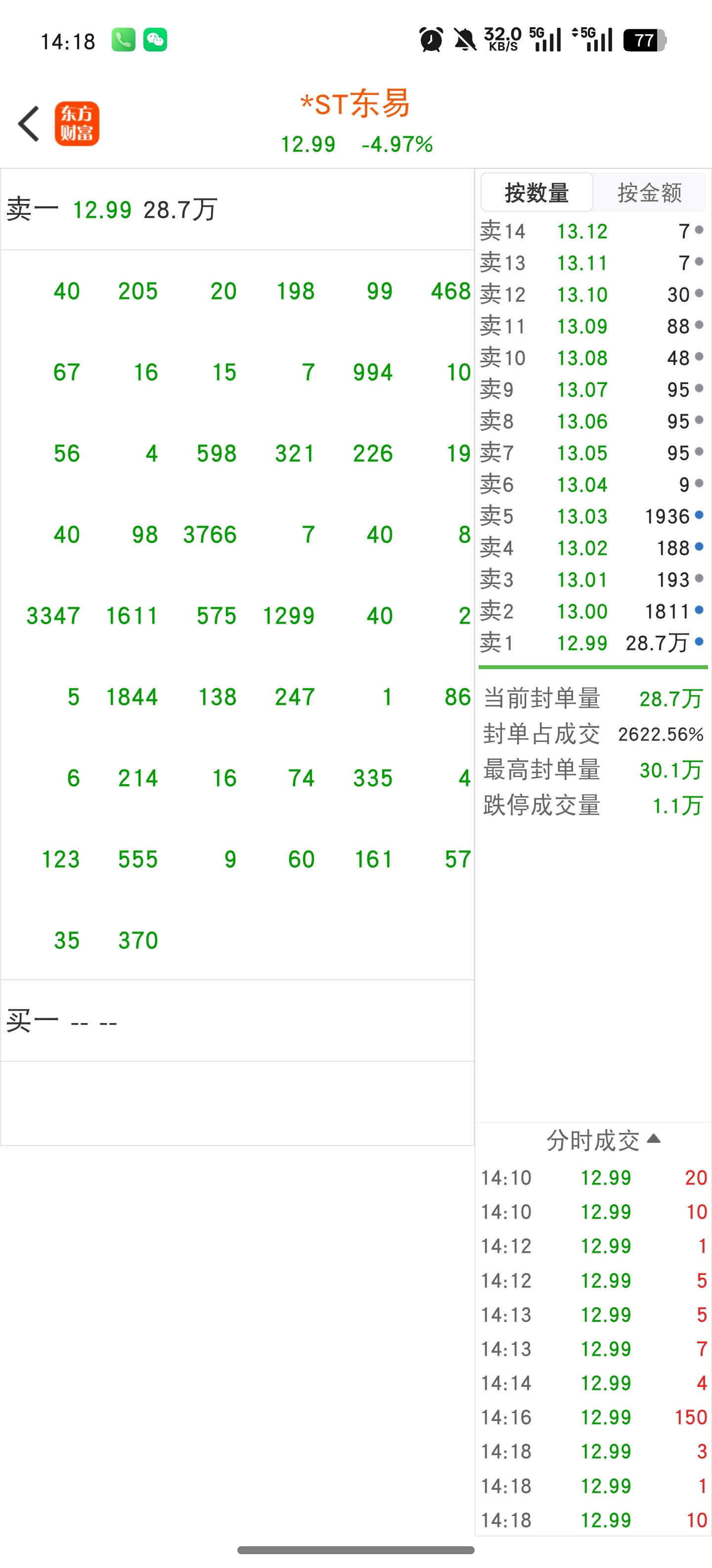 $*ST东易(SZ002713)$ 今天最多消耗到994手,其他人可以撤单了,大家撤了看看哪些是勾庄压的单