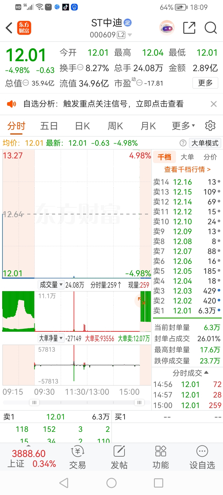 $*ST东易(SZ002713)$ $ST中迪(SZ000609)$ 中迪比东易的跌停封单小,所以下周中迪先撬板,东易后撬板!但是东易都回调七个跌停板了,再来一个跌停板外面等抄底的也就可以搏一搏反弹了!