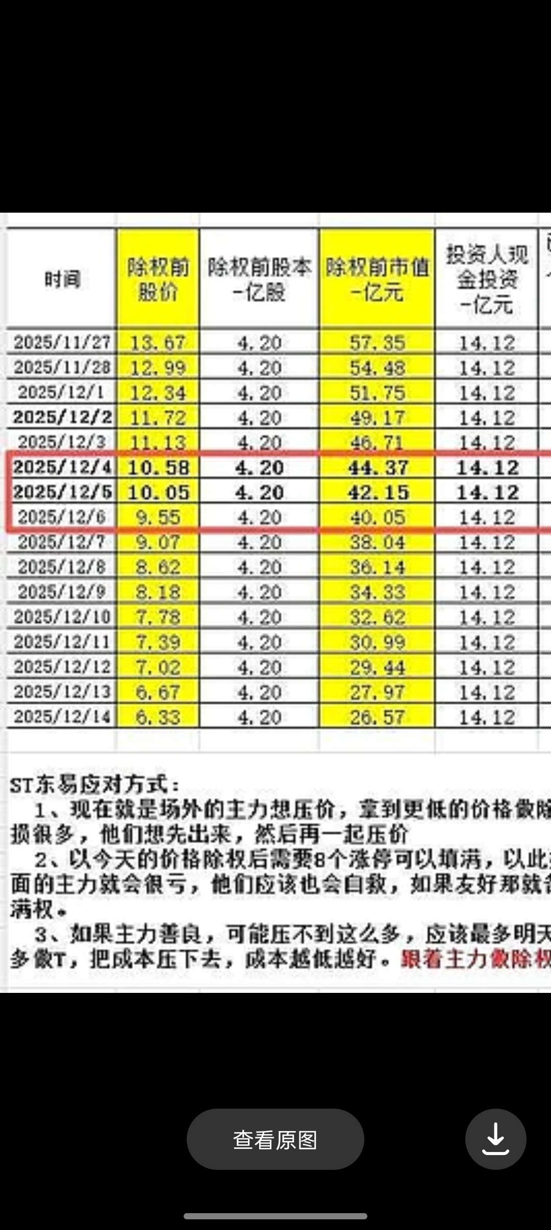 $*ST东易(SZ002713)$ 这位的测算,股价打压到十元的可能性很大,还有四道五个跌停。这个位置一倍加仓,写策略怎么样。