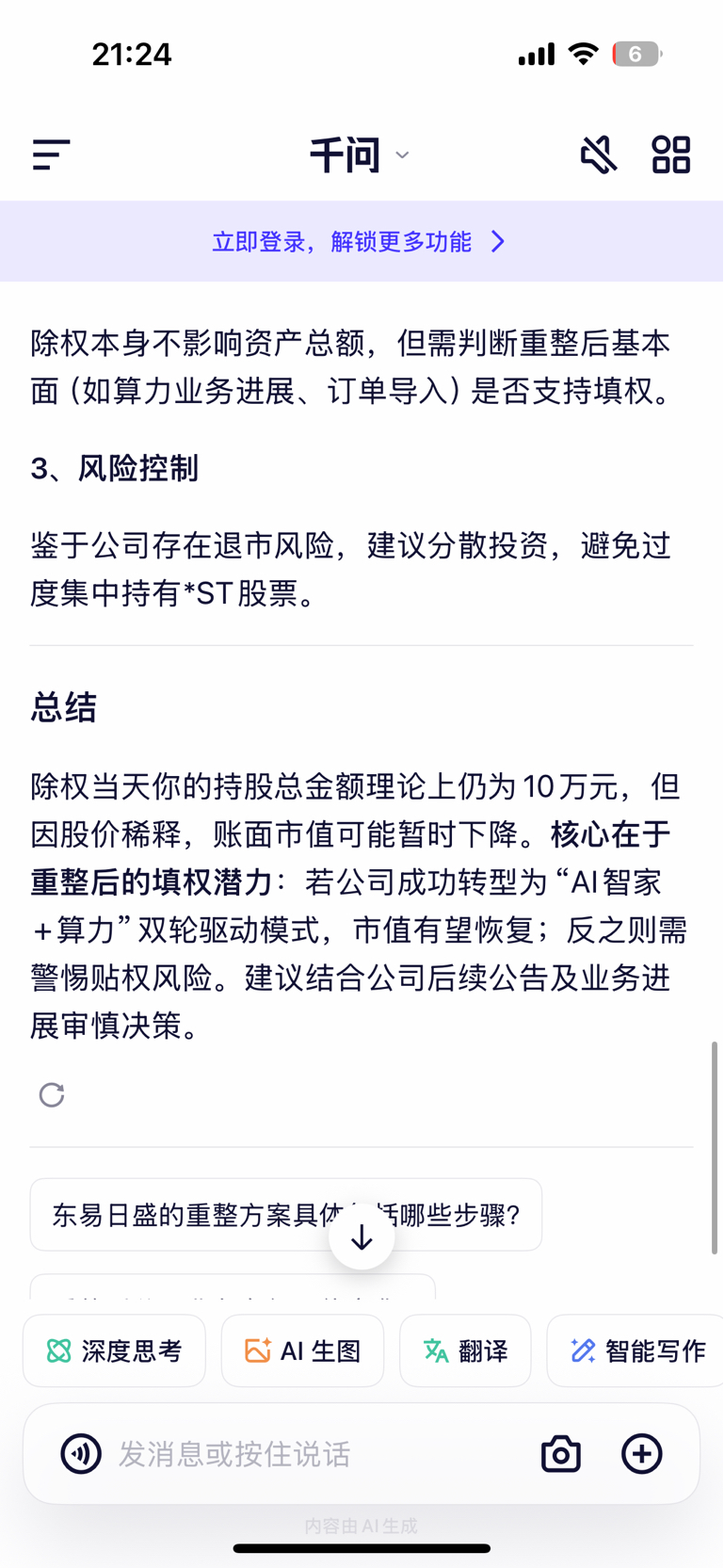温馨提示: 1.根据《证券法》规定,禁止编造、传播虚假信息或者误导性信息,扰乱证券市场;2.用户在本社区发表的所有资料、言论等仅代表个人观点,与本网站立场无关,不对您构成任何投资建议。用户应基于自己的独立判断,自行决定证券投资并承担相应风险。《东方财富社区管理规定》