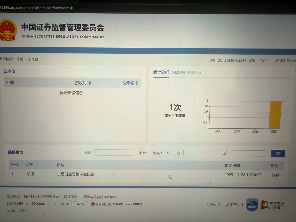 举报内容:有人操作*ST东易股价,请证监会核查!
