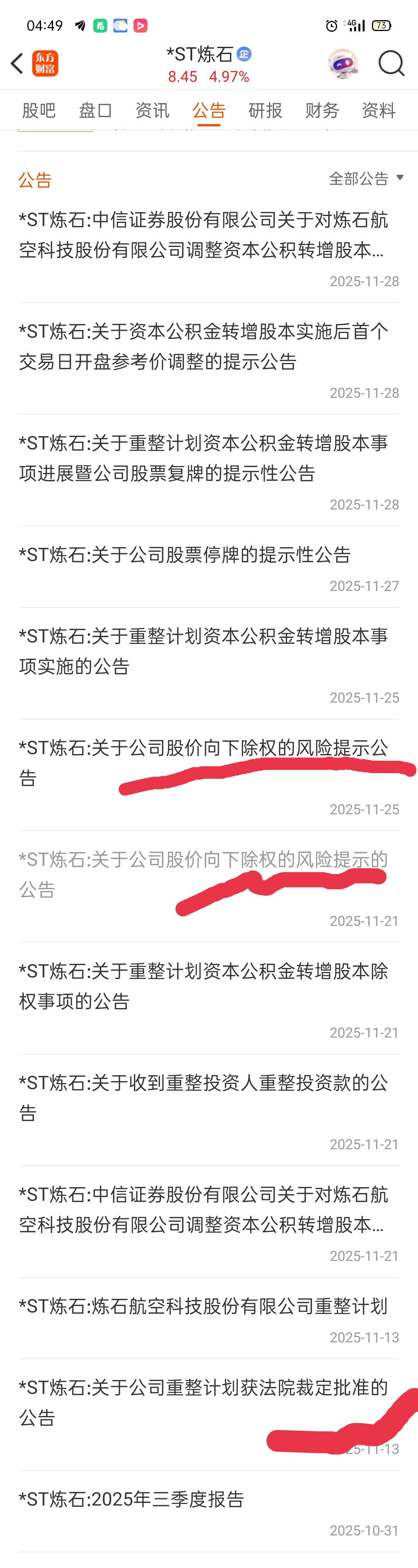 st烁石除权股价下降风险提示公告和正式除权公告在重整计划被批准一周后才相差不久相继