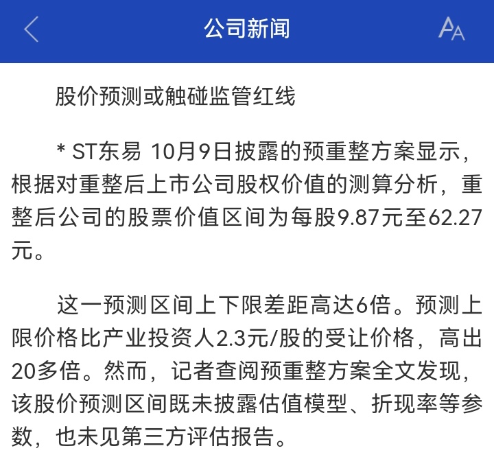 $*ST东易(SZ002713)$ 会不会因为这个股价预测涉及信披被立案?如果被立案重整就黄了?有没有懂的