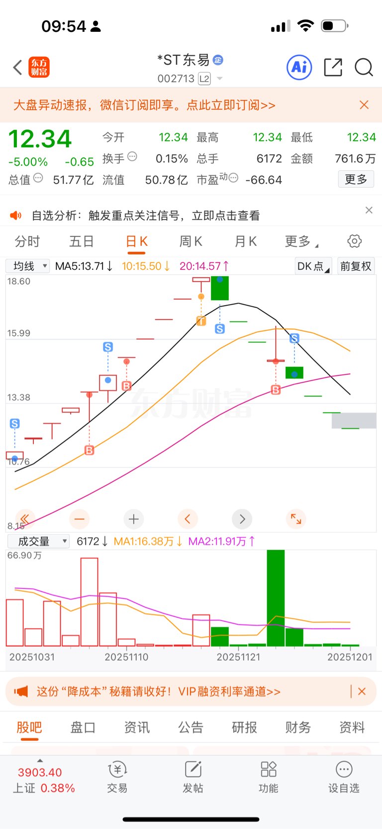 $*ST东易(SZ002713)$ 地天失败,第二天就清仓了。缩量跌停,估计还有5个跌停左右
