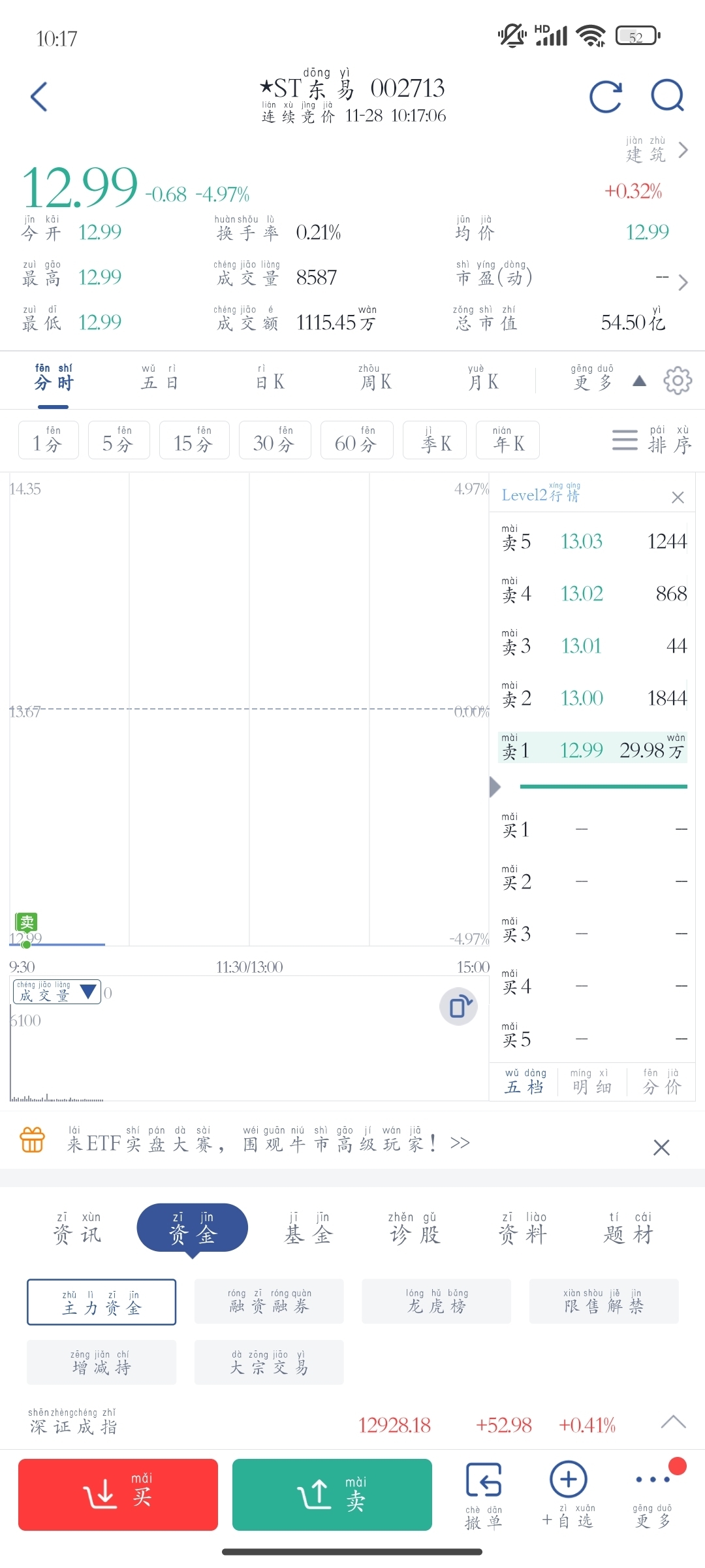 $*ST东易(SZ002713)$ 好多说马上会反弹的,其实就是为了让你别挂,让他挂了早点跑,我就是哈哈,还好我隔夜单跑出来了