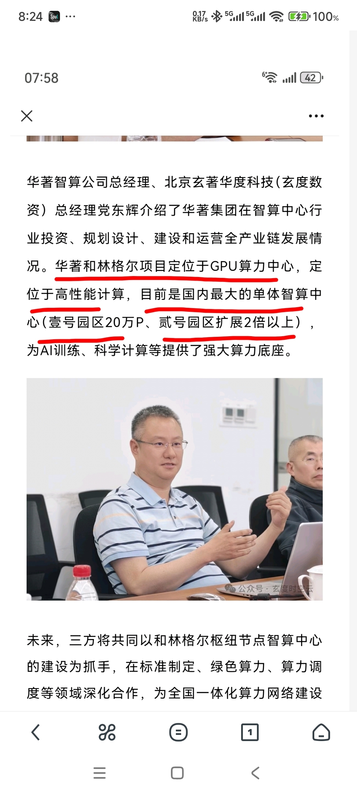 华著总经理,一期华著20万P高端算力,2期二倍以上,一期12月投入运营,现在机柜